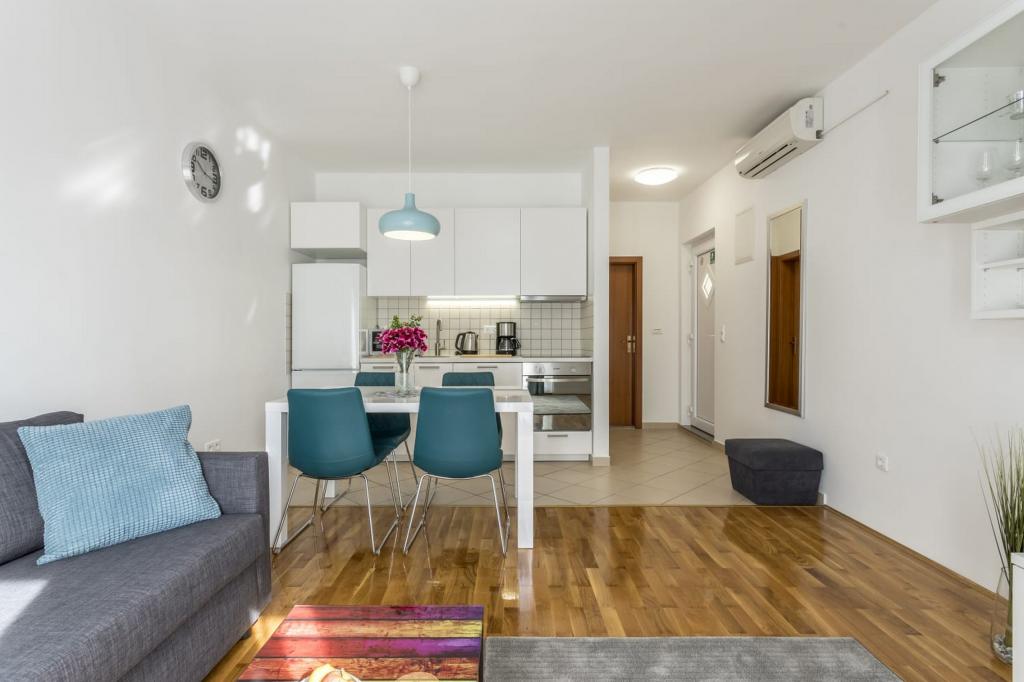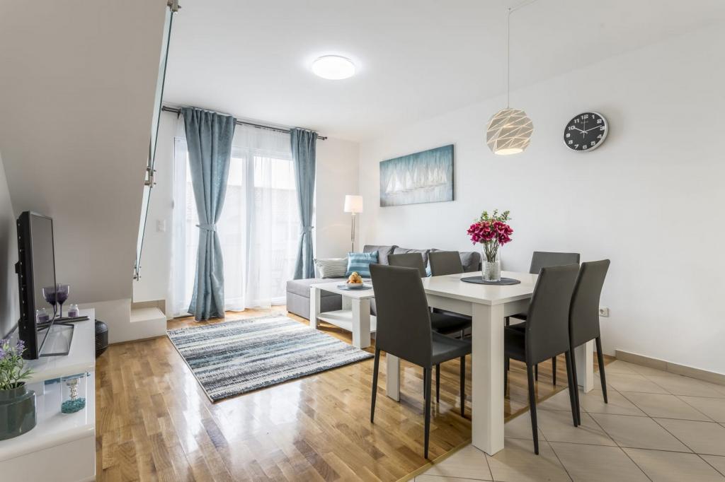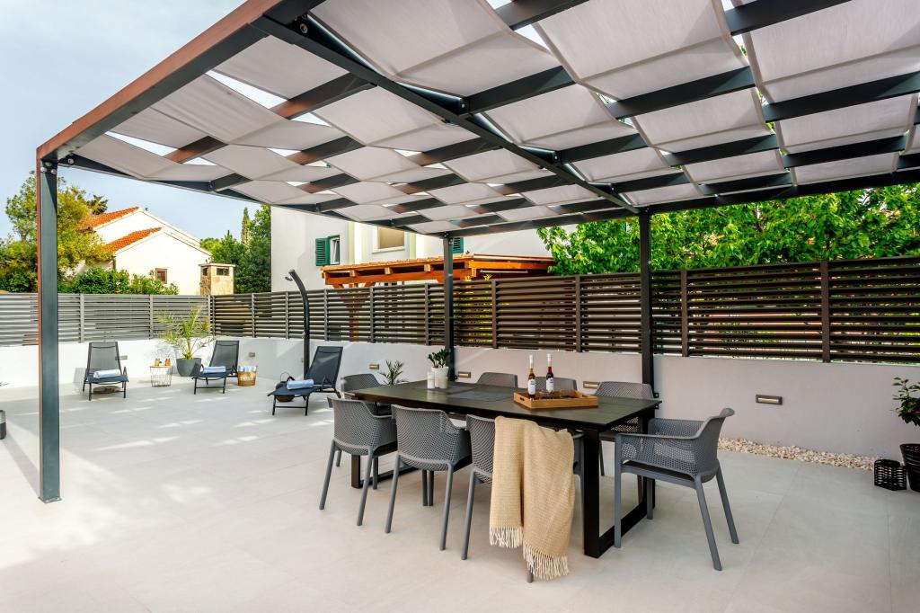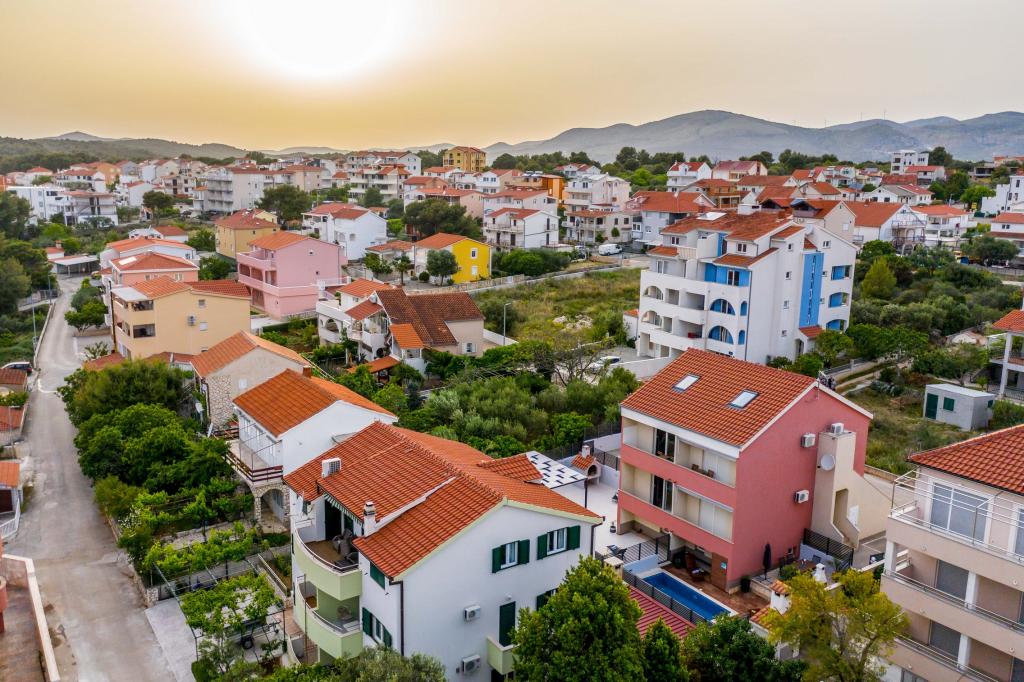 Villa Tango se nachází v Okrug Gornji, nedaleko Trogiru, v oblasti Střední Dalmácie a je 100 metrů od moře a 500 metrů od centra. Velikost vily: 240 m2. Vila má soukromý bazén a jacuzzi s lehátky pro bezstarostné vyžití na slunci. Hosté mají k dispozici gril a terasu s jídelním stolem. Vila je vybavena kuchyní, 8 ložnicemi s velkými postelemi pro dvě osoby a třemi obývacími místnostmi s rozkládací pohovkou pro dvě osoby. Vila má čtyři koupelny. Cena zahrnuje 2 elektrické skútry. Parkování je zdarma.