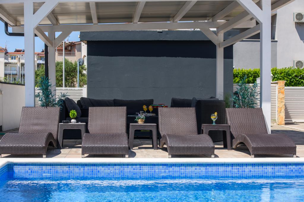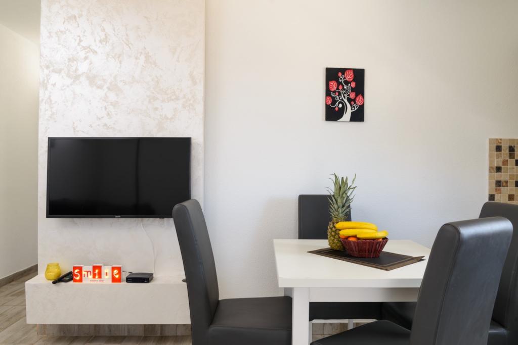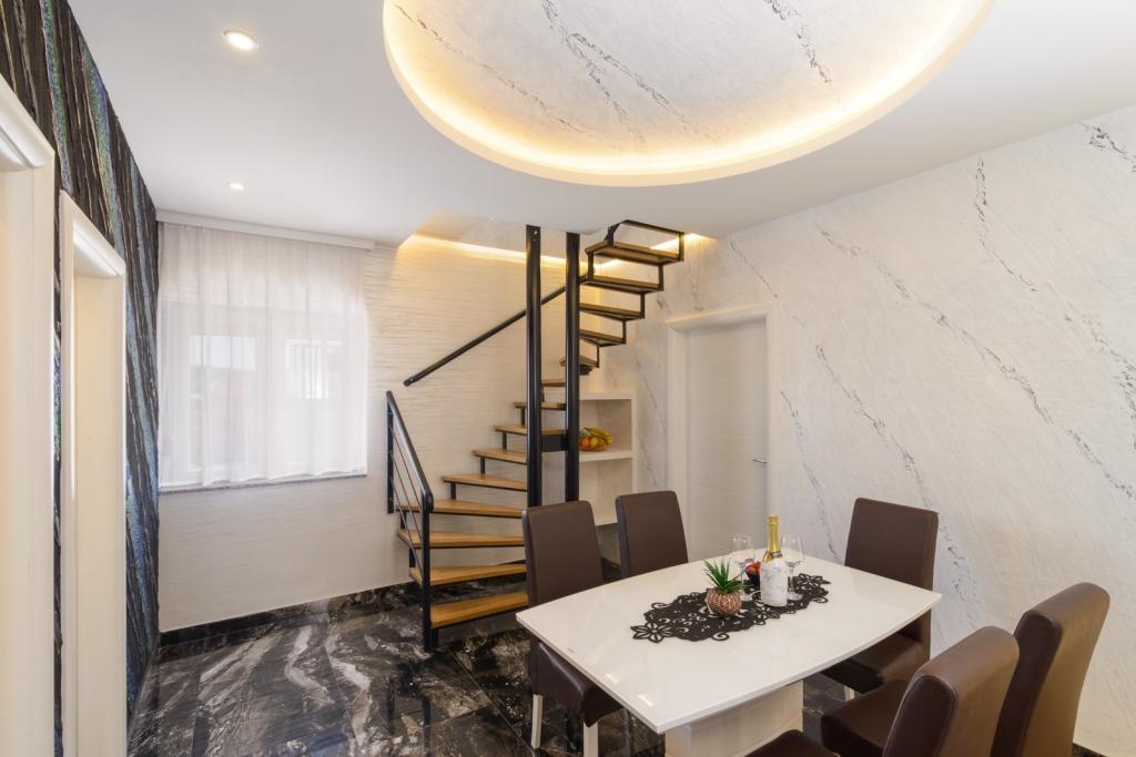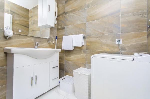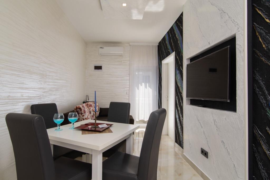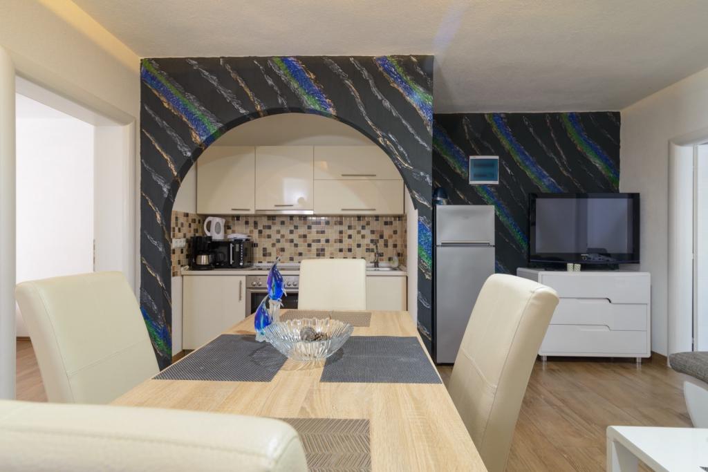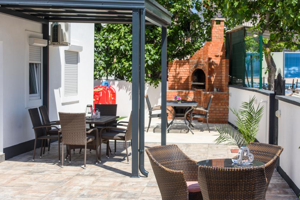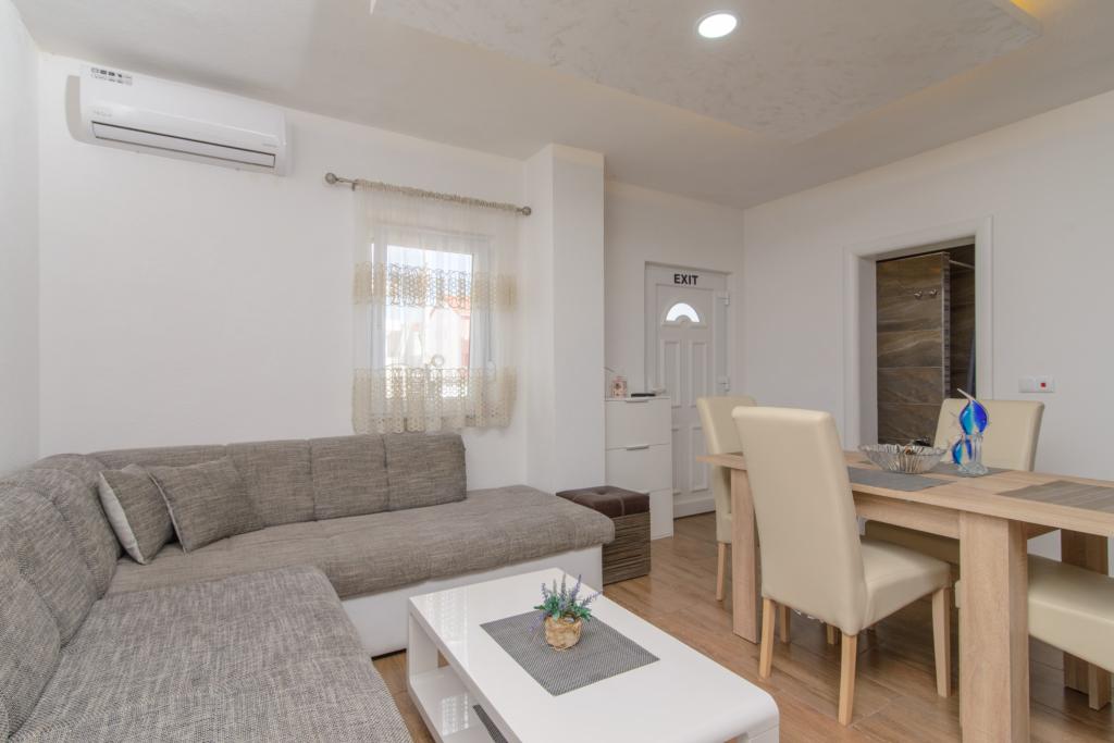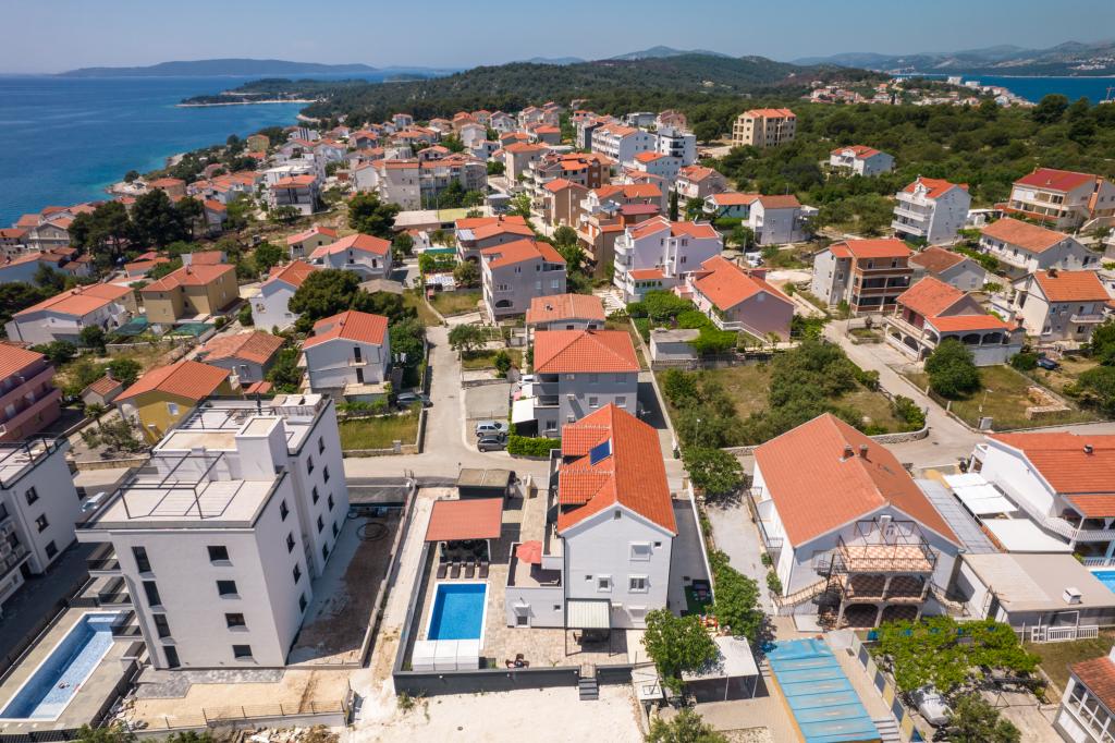 Apartmány se nacházejí v nově vybavené budově Villi ET A ve městě Okrug Gornji na ostrově Čiovo, které je napojeno na historické město Trogir. Kompletně a nově vybavené apartmány v krásné části ostrova Čiovo. Pouze 70 m od moře. V přední části bytu je bazén a velký gril. Apartmány obsahují vše, co potřebujete pro rodinnou dovolenou s dětmi nebo přáteli. Vila byla postavena v roce 2017 a obsahuje sedm apartmánů, všechny moderní a přizpůsobené pro turistiku. Objekt se nachází 10 minut chůze od centra města, kde najdete: ambulance, lékárnu, poštu, různé značky, nápoje s čerstvými potravinami, celou řadu restaurací a kaváren a slavnou pláž Copacabana. A jen 3, 5 km od centra Trogiru se můžete vydat autem, autobusem nebo lodí. Přejeme všem hostům příjemné a příjemné léto.