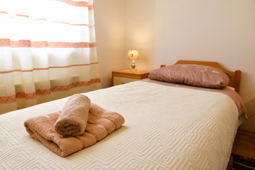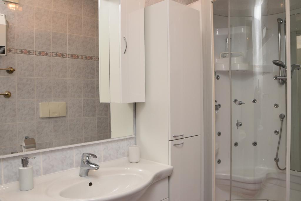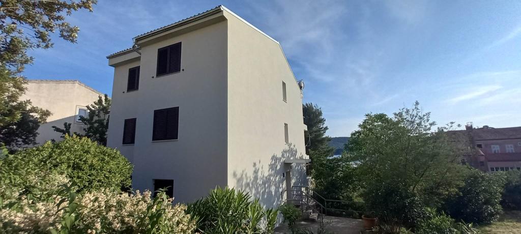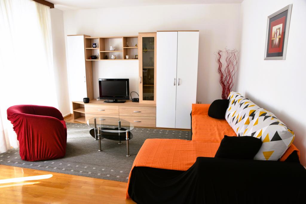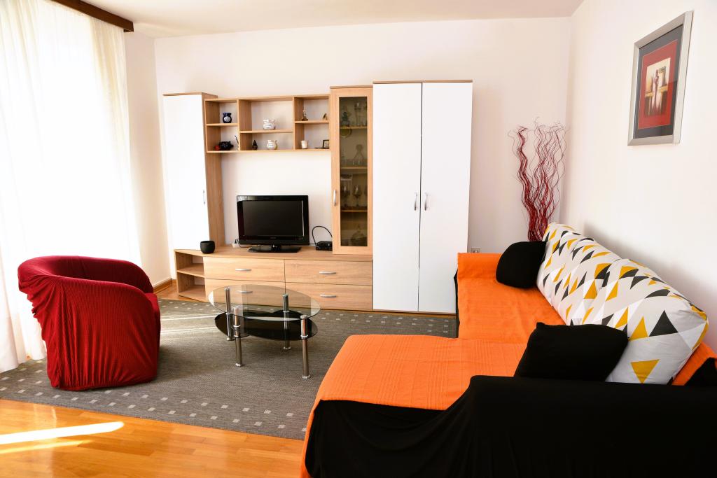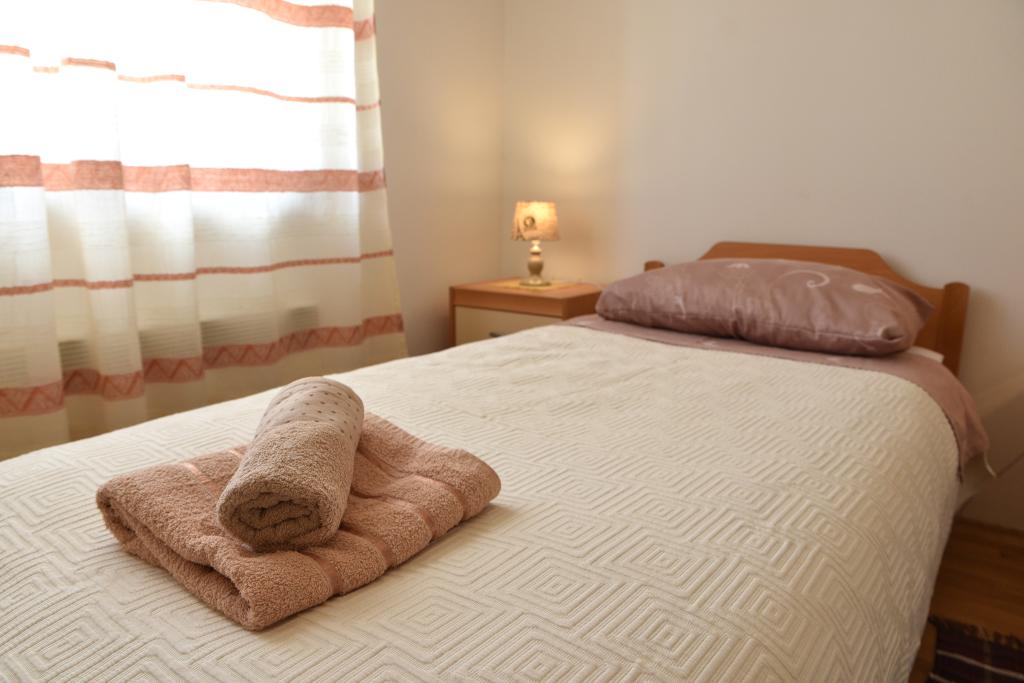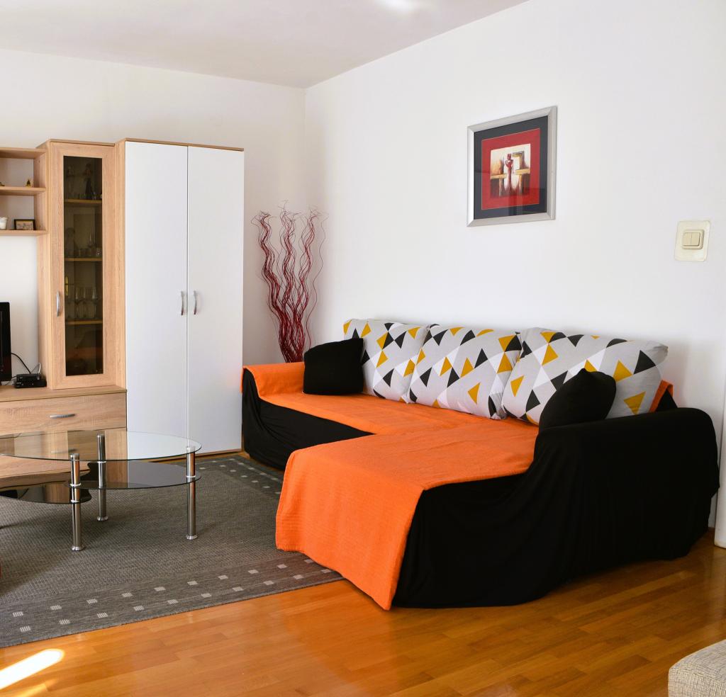 Apartmán s výhledem na moře se nachází na klidném místě ve druhém (posledním) patře malé budovy, 100 metrů od oblázkové pláže. Před budovou je bezplatné veřejné parkoviště s vyhrazeným parkovacím místem. Apartmán (67 m2) má dvě ložnice, plně vybavenou kuchyň, koupelnu, obývací pokoj a balkon s výhledem na moře. Zdarma je k dispozici WI-FI. Byt se nachází 5 minut chůze od oblázkové pláže a 10 minut chůze od centra. Nejbližší obchod, kavárna a restaurace jsou od apartmánů vzdálené 3 minuty chůze.