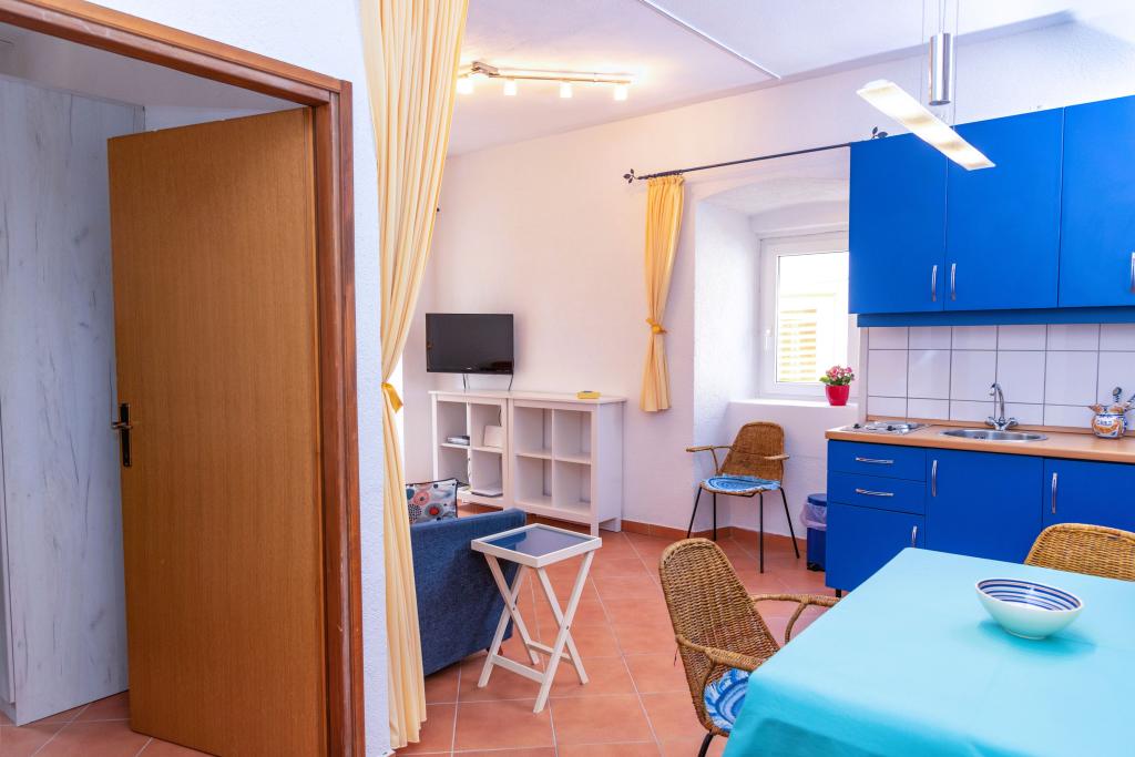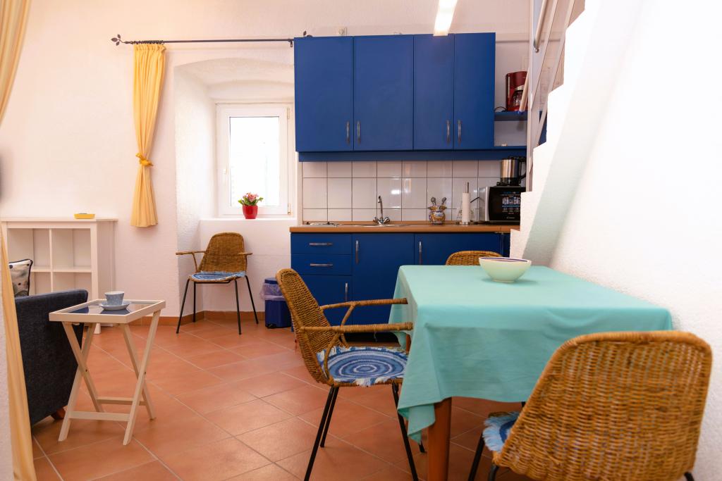 Studiový apartmán s oddělenou ložnicí v historickém centru Cresu, pár kroků od hlavního náměstí a nábřeží. Nachází se v menším domě ve druhém (posledním) patře. Má 31 m2 a skládá se z ložnice, koupelny, malé kuchyně a obývacího pokoje. Studio apartmán se nachází v srdci starého města, v blízkosti hlavního náměstí a přístavu Cres. První oblázková pláž je vzdálena 10 minut chůze. Obchody, restaurace a kavárny jsou v blízkosti, 2-3 minuty chůze. K dispozici je bezplatné Wi-Fi a veřejné parkoviště.