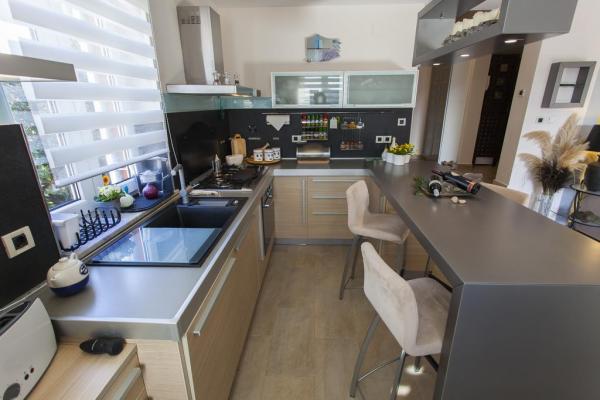 Luxusní ubytování se nachází v klidné vilové části města Cres, pouhých 50 m od pláže. 120 metrů čtverečních Byt se nachází částečně v přízemí. To má tři ložnice, otevřený obývací pokoj a kuchyň a dvě koupelny. Dvě ložnice jsou vybaveny manželskou postelí (1, 60 m široká), zatímco třetí (1, 90 m 0, 80 x) má samostatnou postel. Komfortní obývací pokoj s výhledem na Jadran nabízí útulný obývací prostor a TV s plochou obrazovkou s DVD přehrávačem a hudebním systémem. Moderní kuchyňská linka je plně vybavená a má také kuchyňské linky jako jídelna. Obě koupelny jsou vybaveny sprchovým koutem, umyvadlem, WC a vlasy, jeden z nich také s bidetem. Všechny prostory dovolené jsou vytápěny podlahovým topením. Klimatizační systém nabízí prostorný obývací prostor s otevřenou kuchyní pro chlazení. Pokud je to nutné, můžete použít podmínku stanovenou za pračkou rozdělení prostoru u vchodu volný. Plně oplocený venkovní areál se zahradou a terasou je k dispozici pro výhradní použití, a umožňuje pro děti a domácí zvířata (na vyžádání), trezor pobyt venku. Terasa je vybavena zahradním nábytkem, slunečníkem a lehátkem a umožňuje výhled na moře. Útulnou grilování je k dispozici profesionální plynový gril. Váš osobní automobil můžete zaparkovat zdarma na vlastním venkovním parkovacím místem. Wi-Fi je zdarma v celém objektu.