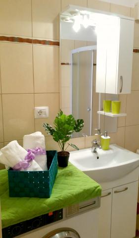 Tento prostorný a pohodlný apartmán (65 m2) se skládá ze dvou ložnic a dvou koupelen, díky čemuž je ideální pro rodiny nebo malé skupiny mladých lidí. V apartmánu se může ubytovat až 5 osob. Prostor je pečlivě vyzdoben příjemnými detaily a nabízí hostům příležitost pro pohodovou dovolenou s veškerým dostupným vybavením. V apartmánu si užijete příjemnou atmosféru s TV s plochou obrazovkou, pohodlnou pohovkou, ideálním místem pro zakončení dne s oblíbeným filmem, poslechem hudby nebo čtením dobré knihy. Jídelna je vybavena pohodlným stolem, kde se naši hosté mohou bavit s přáteli a rodinou u čerstvě připraveného jídla. Plně vybavená kuchyň poskytuje vše, co můžete potřebovat k přípravě jídla. Terasa je nejatraktivnější částí zážitku z bytu. Je vybaven bistro stolem se dvěma židlemi a umožňuje vám vychutnat si romantickou snídani, večeři nebo si jednoduše užít povídání a plánování návštěv starého města a krásných pláží.