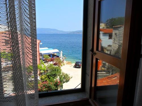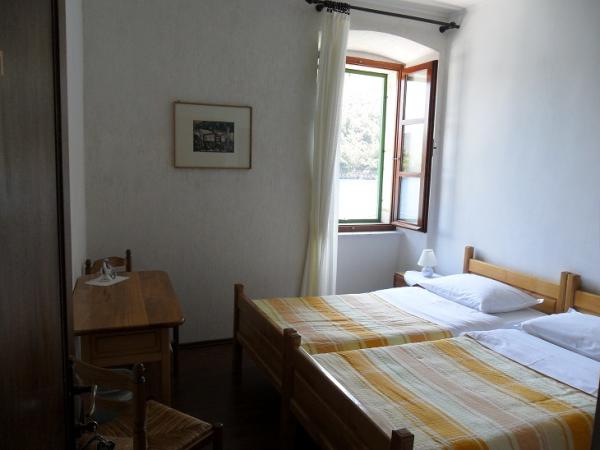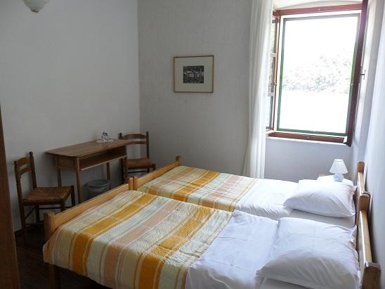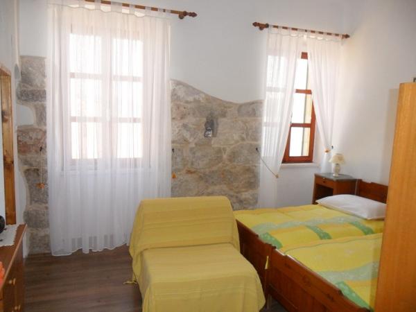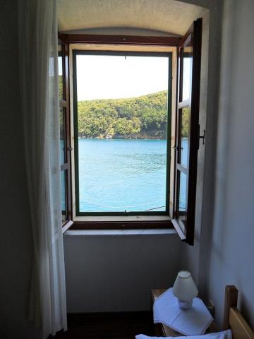 Krásně zařízené pokoje a studio v 150 let staré kamenné dům-paláce, na moři, v malé obci bez hotelu v nočních klubech. V přízemí se nachází restaurace, pokoje jsou ve 2. patře a všechny mají výhled na moře, a největší místnost a balkon. Byt má zahradní terasu