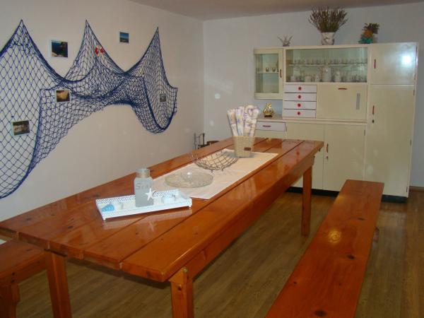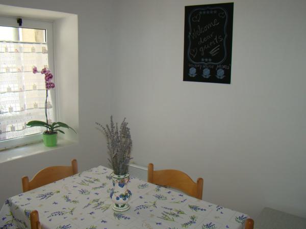 Rekreační dům Moro se nachází v malé obci Orlec na ostrově. Nastavit ve třech patrech. Zpočátku zde vstupní hala, obývací pokoj, kuchyň, jídelna, WC, koupelna a kuchyň. Na druhé dřevěných schodech podlaha vody a tam jsou 3 ložnice a koupelna. Ve třetím patře také dřevěné schody vodě a tam je čtvrtý ložnice a prostor pro relaxaci, odpočinku a zábavy, která je vybavena deskových her. Z této místnosti se můžete jít ven na terasu, která má nádherný výhled na vesnici, moře a okolní ostrovy. K dispozici jsou dvě klimatizační jednotky, které lze ochladit celý dům. Dům je také vybaven satelitní TV a internetem. Dvůr je kamenný stůl s židlemi a grilem.