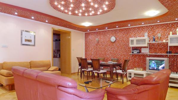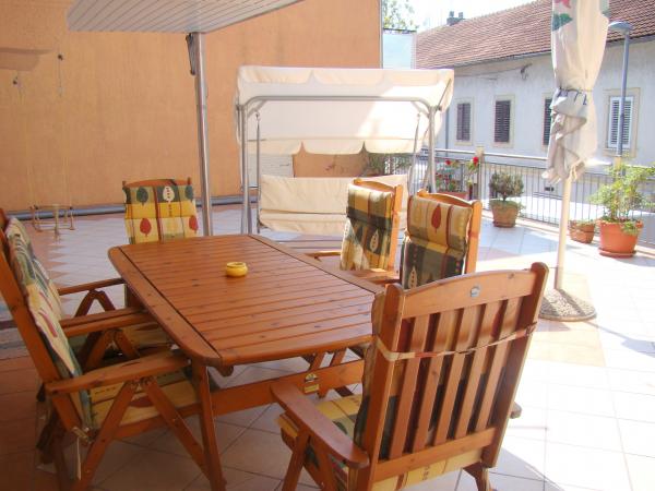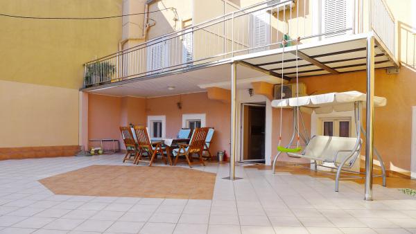 Moderní, nově zrekonstruovaný, plně vybavený, klimatizovaný byt o rozloze 110m2 s jedinečnou terasou o rozloze 80m2, který se nachází v samém centru města, 50m od moře a pláže, v blízkosti trhu, pekárny a všech hlavních nákupních center. Byt se skládá z velkého obývacího pokoje (s možností přistýlky pro dvě osoby, 140200) spojené s kuchyní a velkou jídelnou a třemi ložnicemi s manželskou postelí, 2 dětmi, vestavěnými skříněmi. Spální jsou propojeny se dvěma velkými koupelnami. Objekt se nachází 5 minut chůze od všech druhů pláží: písečné, oblázkové, kamenné ... Byt je velmi vhodný pro rodinnou rodinu (6 2 2 lůžko). Vzhledem k umístění apartmánu je velmi málo potřeba používat auto. V blízkosti apartmánů jsou muzea, galerie, četné restaurace, kavárny ...