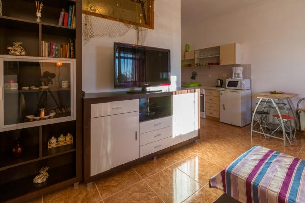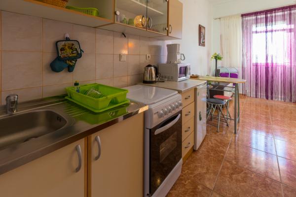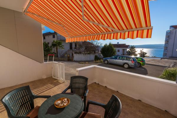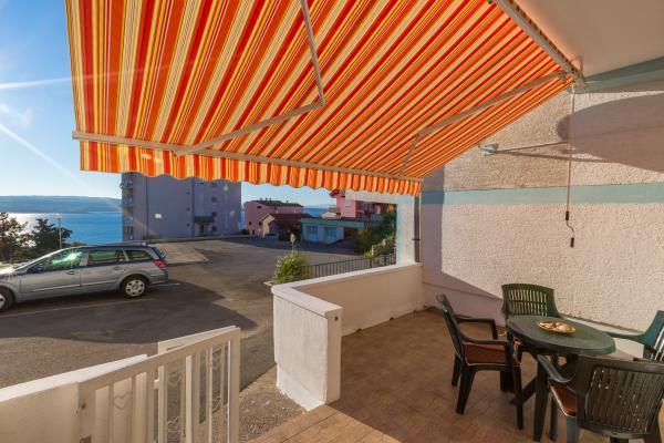 V obytné čtvrti, u vchodu do Crikvenice, 900m od centra města a městského hluku, tam je malý byt 35m2. Nedaleko, 150 m od hotelu, je malý trh se základními potravinami a toaletní potřeby. Na pláži je jen 400 metrů a nedaleko je malé hřiště pro děti. Byt se nachází v přízemí pozdější datum, a celá vesnice se nachází na mírném kopci, takže terasa nabízí částečný výhled na moře a sousední ostrov Krk. Z terasy je pokryta postel s nebesy. Parkování je zajištěno. V ložnici je manželská postel. V obývacím pokoji je podlézat postel s dvou přistýlek. V obývacím pokoji je malá kuchyňka s veškerým potřebným příslušenstvím, včetně malého lednice s mrazákem, kuchyňské nádobí, varnou konvicí, troubou a sporákem, mikrovlnnou troubou a jídelním stolem. V koupelně je pračka. Byt je vybaven klimatizací, TVSAT a Wi-Fi, jsou zahrnuty v ceně.