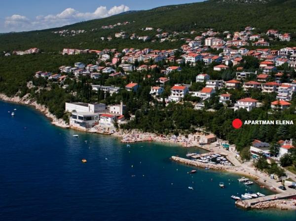 Apartmán Elena s výhledem na moře se nachází v městečku Dramalj, 3 km od centra Crikvenice. Nachází se první řádek moře. V blízkosti 50 m od pláže, restaurace, kavárny a baru. Apartmán: 3 ložnice, kuchyň / jídelna, koupelna, 2 balkony s výhledem na moře, terasu a zahradu, parkoviště, Wi-Fi, klimatizace.