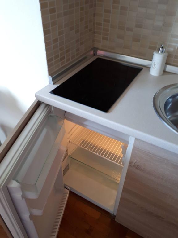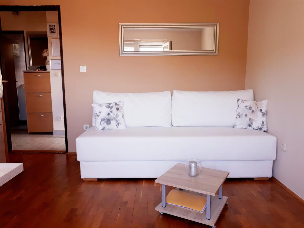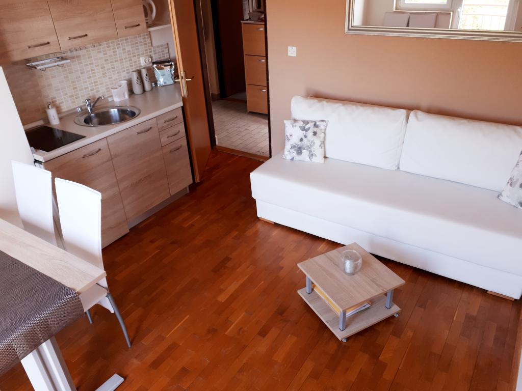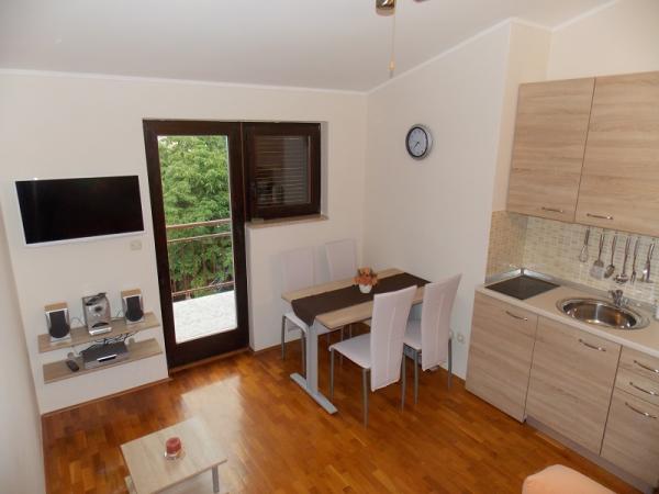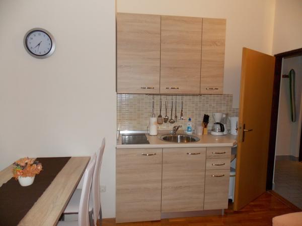 Apartmán je moderně zařízený, vše hezké, čisté, je zde klimatizace, wifi, parkování přímo u apartmánu ve stínu, opravdu krásný výhled na moře (2 balkony-jeden z ložnice a jeden z kuchyně), celkem klidné místo, nic nás v noci nerušilo. Pokud si chcete levně nakoupit potraviny např. na snídani a večeri, tak je cca 5 minut chůze velké nákupní centrum typu tesco. Majitelé byli velice příjemní a ochotní. Přijížděli jsme déle večer a odjížděli za svítání, nebyl problém, domlouvali jsme se na místě sms zprávami. Jediný a zásadní nedostatek tohoto apartmánu je, že je hodně daleko od moře. Sice je psáno asi vzdušnou čarou 300m, ale je to neskutečný kopec a pokud jdete přímou cestou dolů, tak zde nejsou žádné hezké pláže a musíte jít další kilometr dál.