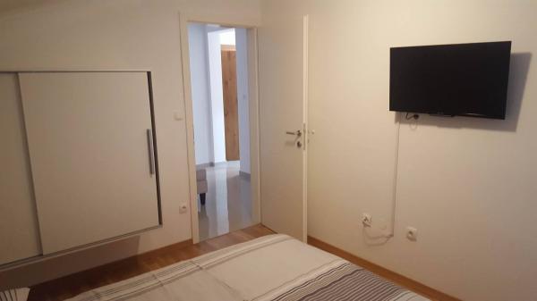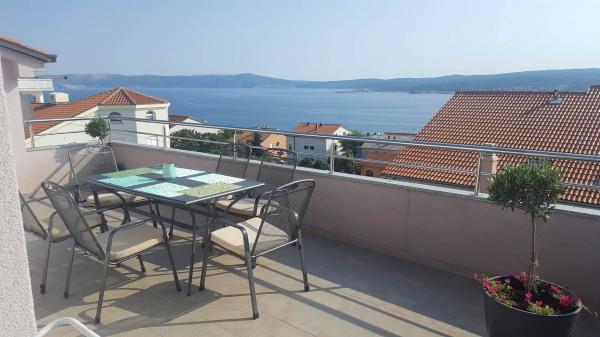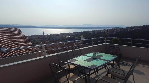Moderní apartmány. , První rok vydání. , Byt má terasu s výhledem na moře. Dvě koupelny, 3 ložnice s TV, WIFI zdarma. , Klidná část města. , Rodinný dům. , 6 min chůze do centra města a pláže. ,