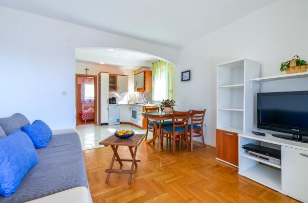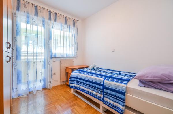 Apartmán Valerija se nachází v odlehlé dlážděné ulici, která se nachází v první řadě k moři u slavné písečné pláže Crikvenica "Crni Mol". Nedaleko se nachází několik kaváren umístěných přímo u moře, stejně jako spousta restaurací nabízejících rychlé a pomalé občerstvení, vedle bytu je také malý trh se základními potravinami a hygienickými potřebami, stejně jako pekárna, která funguje téměř 24 hodin. Centrum města je vzdálené asi 600 m nebo 10 minut relaxačních procházek po moři. Byt má dvě oddělené ložnice, jednu s manželskou postelí a jednu se dvěma samostatnými lůžky. V koupelně je sprchový kout a umyvadlo s toaletou. Kuchyň je plně vybavena nádobím, lednice má mrazák a je zde sporák, trouba, plynový sporák, myčka a kávovar. Ve stejném pokoji je jídelní kout a rozkládací pohovka pro dvě osoby. Na snídani nebo na relaxační večeři se sklenkou vína je k dispozici terasa pro 6 osob s výhledem na moře. Klimatizace, TV a wifi.
