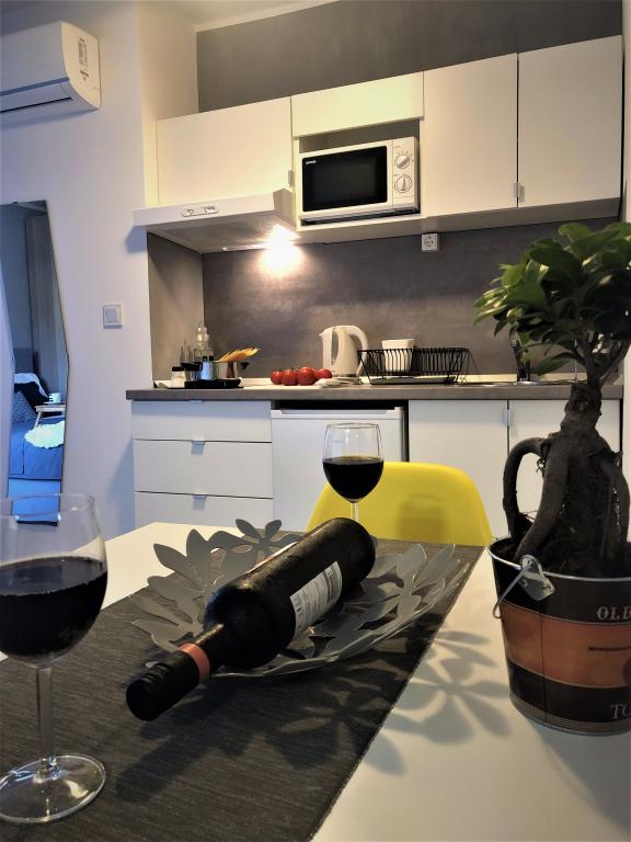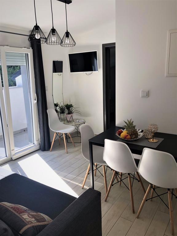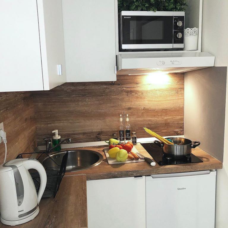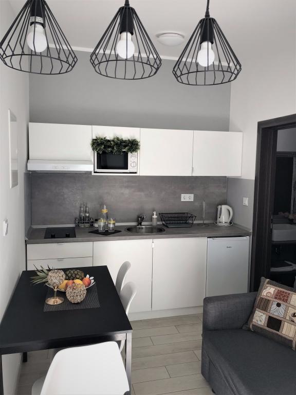 Nově postavené, moderní byty v centru města. Vzdálenost od pláže je 150 metrů. Jsme blízko všech důležitých zařízení. Obchod je vzdálený 30 metrů. Bankomat, pekárna, pošta, záchranná služba a další zařízení máte na dosah ruky. Apartmány mají bezplatné Wi-Fi, klimatizaci, parkování na místě, satelitní programy, pohodlné hotelové postele, balkony a terasu s grilem a prostorem pro hraní a socializaci. Kromě výše uvedeného existují další zařízení, která potřebujete pro příjemnou a pohodlnou dovolenou. Ubytování je ideální pro páry, rodiny a podnikatele. Vítejte v našich apartmánech a je na nás, abychom vám poskytli nezapomenutelnou dovolenou. Informace o obsazenosti a cenách podle období jsou k dispozici v nabídce.