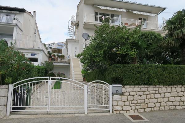 Náš dům se nachází ve velmi klidné slepé ulici, s krásným výhledem na moře a ostrov Krk z terasy. Každý apartmán má vlastní terasu a soukromé parkoviště. Do centra Crikvenice se dostanete pěšky za pár minut a nejbližší pláž je 300 metrů od domu. Letiště Rijeka se nachází na ostrově Krk a je vzdálené asi 18 km. Od nás máte různé možnosti výletů, například město Rijeka s četnými nákupními příležitostmi, krásné město Opatija, Plitvická jezera, různé ostrovy jako Krk, Mali Lošinj, Cres atd. Rádi vás ubytujeme v našich 2 apartmánech a opravdu nám záleží na tom, aby se naši hosté cítili pohodlně a užili si dovolenou.