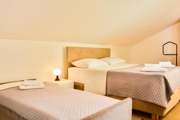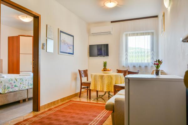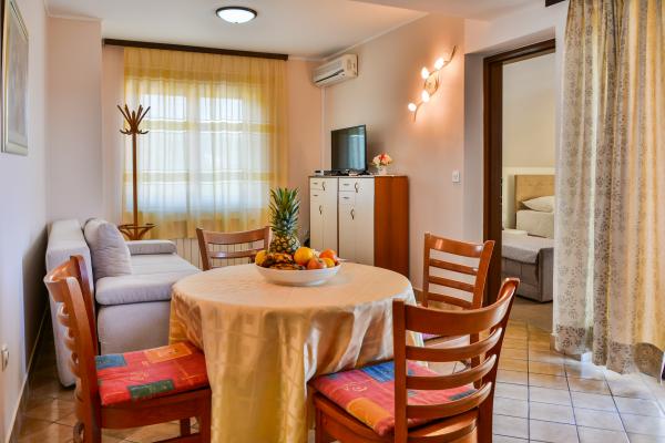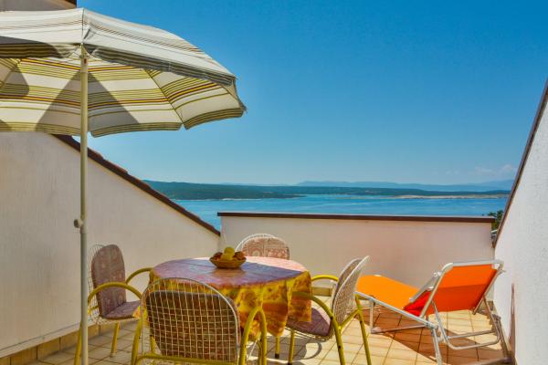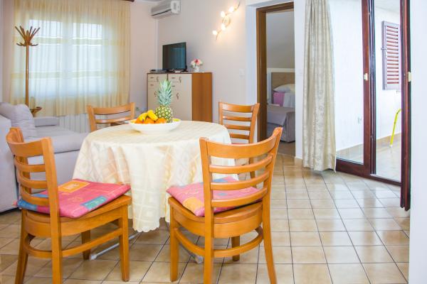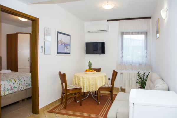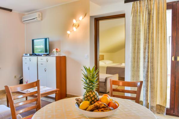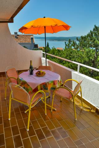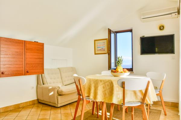 Moderně vybavené apartmány pro 3-5 osob s velkou terasou a nádherným výhledem na moře. Pohodlné postele, klimatizace a wifi. Bezpečné parkování.