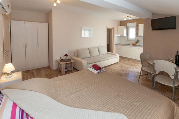 Pobytová taxa je v ceně.V apartmánu jsme strávili 4 noci. Dva dospělí a jedno dítě. Všechna chvála majitelům za jejich čistotu a vstřícnost. Apartmán má vše, co potřebujete. Pláž je velmi blízko. Nedaleko se nachází i obchod. Centrum města je vzdálené 10 minut příjemné chůze podél pobřeží. Můžete se také projít podél pobřeží (asi 2,5 km) do Selce, kde se nachází velmi krásná písečná pláž. Určitě se vrátíme.