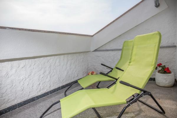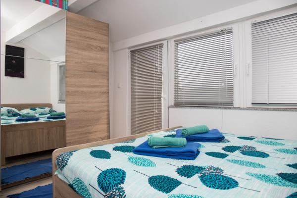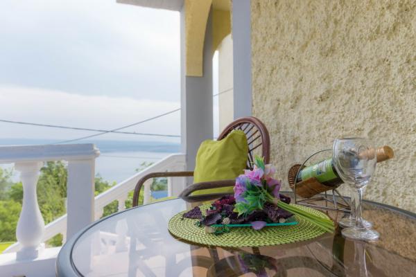 Byt Katarina má rozlohu 80m2 a skládá se z obývacího pokoje, 3 ložnic, kuchyně a jídelny, 2 koupelny, terasy a balkonu. Z bytu je nádherný výhled na moře a celý Kvarner.