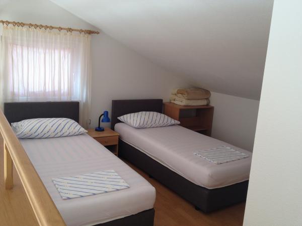 Umístění opravdu stojí za doporučování: pohodlné a dobře vybavený apartmán, pěkný a vstřícný vlastníky, krásný výhled z terasy celého města a přilehlých oblastí. Zvláště pro ty, kteří ocení klid v průběhu prázdnin. Oblast prosperující restaurace, cukrárny. Teplé moře. Zdravím hostitelům. Eve, Adrian a Amelia.