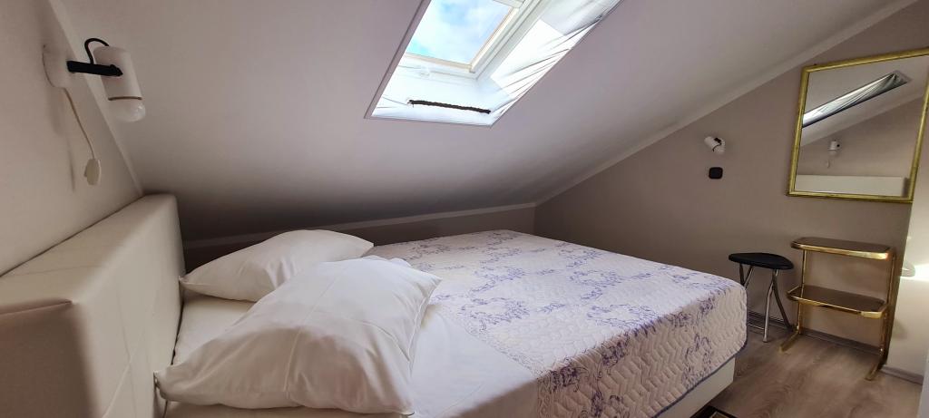 V rodinném domě Jela máte k dispozici dva prostorné apartmány a jeden pohodlný pokoj s vlastním sociálním zařízením. Asi 600 m od moře se dům Jela nachází v klidné části města s krásným výhledem na moře a ostrov Krk. V letních měsících je nejlepší nechat auto na jednom z několika parkovacích míst v zahradě a bezstarostně se vydat na nejbližší pláž nebo do centra města (10-15 minut chůze). Pokud se vám nechce pěšky, městský autobus, který projíždí kolem našeho zařízení, vám tuto cestu výrazně zkrátí. Apartmány a pokoje jsou vybaveny klimatizací, TV se satelitním příjmem, WLAN internetem, koupelnami se sprchou, prostornými terasami nebo balkony s výhledem na moře vybavené sedacím nábytkem. Na pokoji je mini lednička a rychlovarná konvice, kuchyňky v apartmánech jsou vybaveny mikrovlnnou troubou, lednicí, troubou a vším potřebným k přípravě a podávání jídel. Check-in od 13:00 a check-out do 09:00 ráno.
