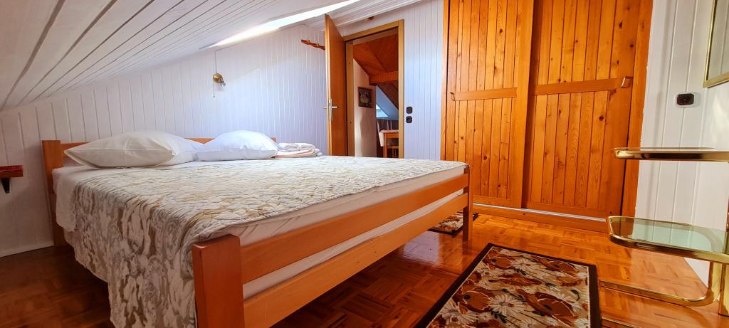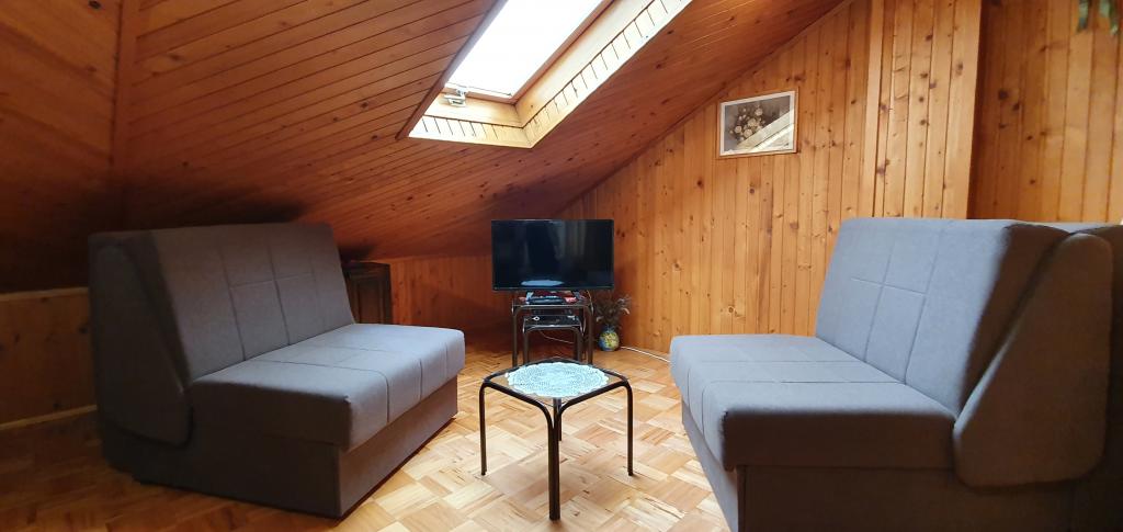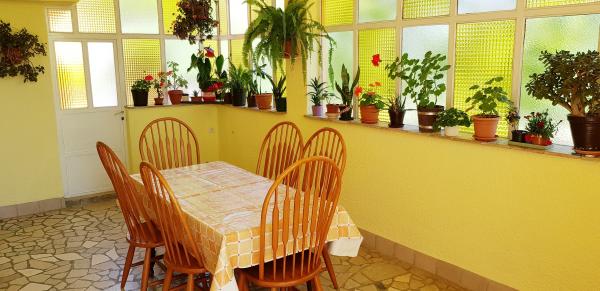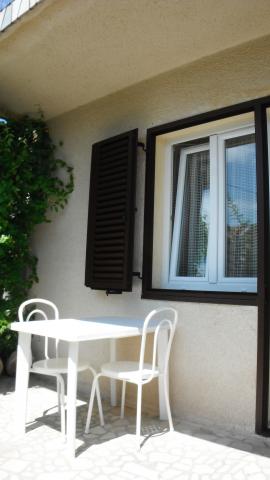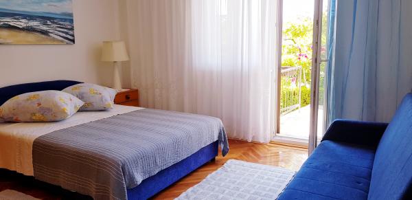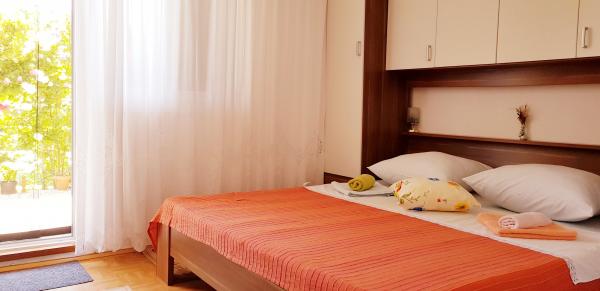 1. apartmán se nachází v podkroví a skládá se ze 2 ložnic s manželskou postelí, koupelny se sprchovým koutem, obývacího pokoje se 2 rozkládacími pohovkami, kuchyně a jídelny, menšího balkonu s výhledem na moře, většího střešní terasa a samostatný vchod. 2. apartmán se nachází v přízemí a skládá se ze 2 ložnic s manželskou postelí (1 přistýlka v každém pokoji), koupelny se sprchovým koutem, kuchyně, prostorné uzavřené terasy s jídelním stolem, menší zahradní terasy, velké terasy s výhledem na moře a samostatný vchod. Pokoj s manželskou postelí, vlastní koupelnou se sprchovým koutem, zahradní terasou s posezením a samostatným vchodem.