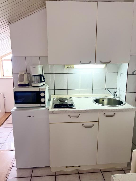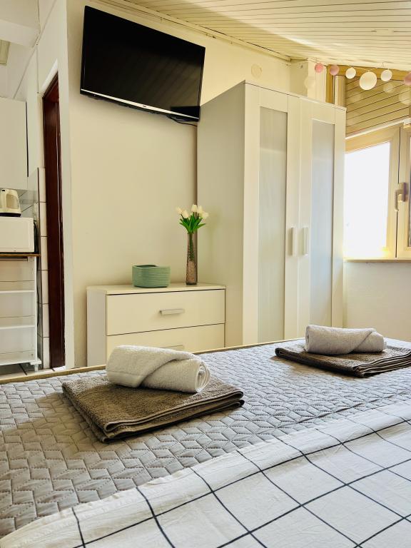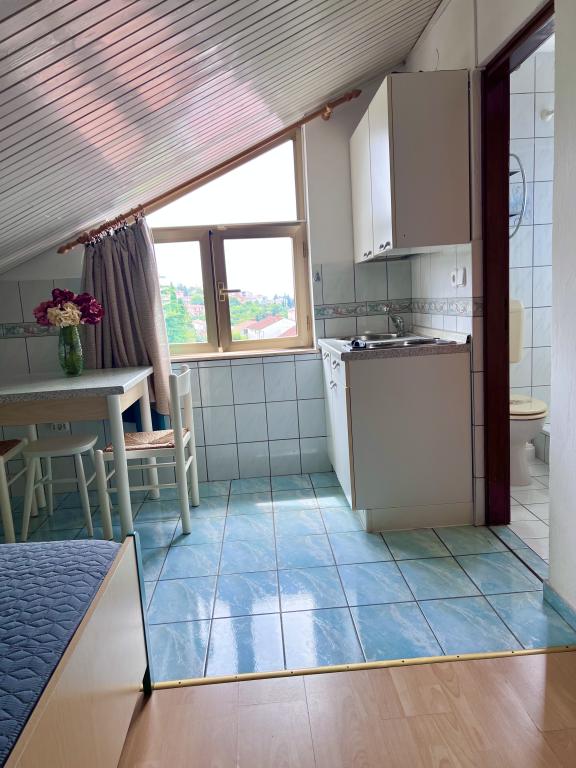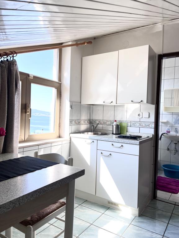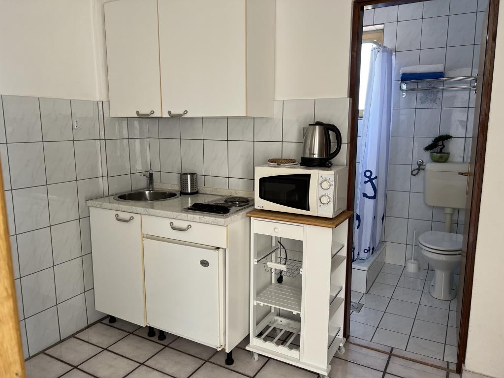Pěkný malý byt, skromný uvnitř. Vše velmi čisté a uklizené. Milí hostitelé. Krásný výhled z balkonu.