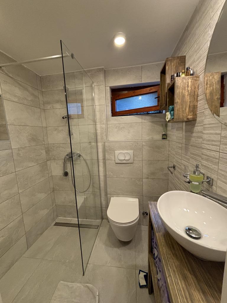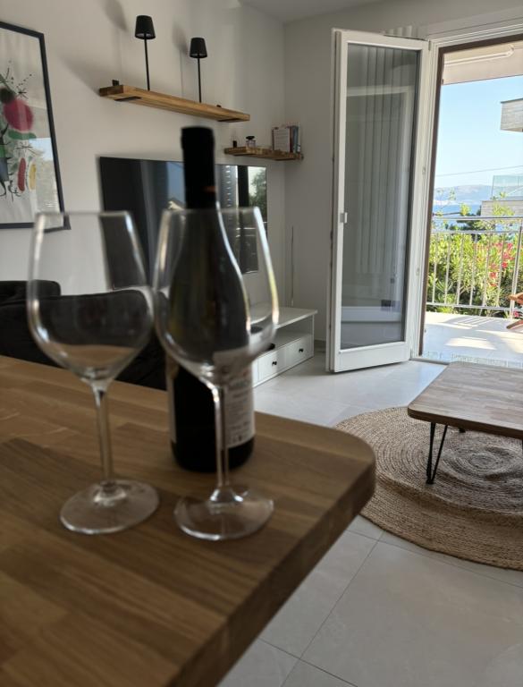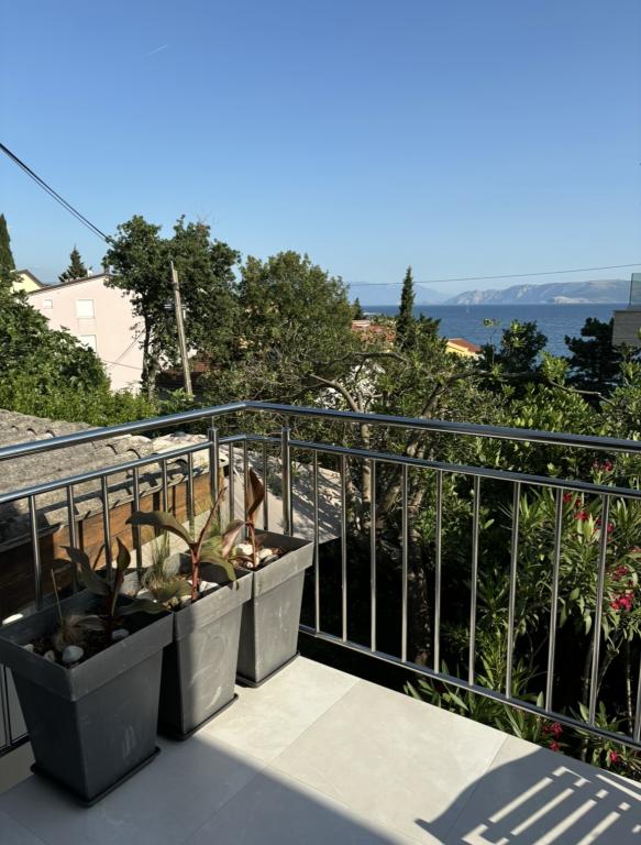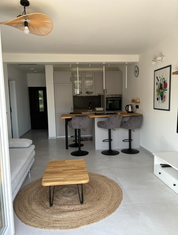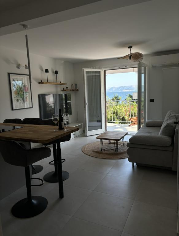 Moderní apartmány s výhledem na moře – pouhých 70 m od pláže s grilem, bezplatným parkováním a nabíječkou pro elektromobily. Užijte si perfektní kombinaci pohodlí, lokality a soukromí v našich nově zrekonstruovaných apartmánech, pouhé 3 minuty chůze od moře. Nacházejí se v klidném rodinném domě se středomořskou zahradou a každá jednotka nabízí vlastní vchody, prostorné terasy a vše, co potřebujete pro příjemnou dovolenou. Rychlé Wi-Fi, klimatizace, satelitní TV, myčka nádobí a pračka. ⸻ Apartmán 1 – 50 m² s výhledem na moře, terasou, balkonem a zahradou • 2 ložnice (1 manželská postel, 2 samostatné postele) • Obývací pokoj s rozkládací pohovkou a plně vybavenou kuchyní • Koupelna • Balkon + terasa (30 m2) Umístěno na kopci – balkon i zahrada Studiový apartmán • Obývací pokoj s rozkládací pohovkou • Kuchyně • Koupelna • Terasa Nachází se v přízemí
