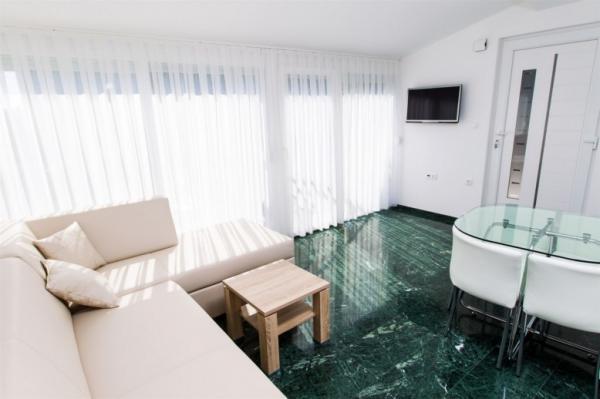 Výzva pro všechny sluneční milenci! Jeden týden (30.07.-8.06.2016) Dovolená v tomto velkém bytě je prostě nestačí! Měli jsme Palma3 a Palma1. Oba apartmány jsou velmi čisté, moderně a vkusně zařízené. Tam je všechno: šumivé bílé, dobré vonící ručníky, super čisté povlečení, kávové filtry, tablety do myčky, cukr, sůl, pepř, ruční pleťová voda ve všech toaletách a další. Pro každodenní nákupy je asi 500 m od velké Konzum, které jsem navštívil v ranní procházku se dostat čerstvé pečivo. Nejlepší je výhled na moře. K bytu náleží balkon ideál: slunce po celý den !! Můžete mít snídani venku, číst a vychutnat si pohled. Nino, majitel je velmi přátelský, vstřícný a otevřený na všechny otázky. Vedle domu schodiště vede dolů na pláž, velmi snadno se chodit (cca 10 min.). O této trase také poskytuje přístup ve večerních hodinách na procházku na promenádu. Atrakce tam po několika deštivých dnech také ;-) Tato investice je vhodná pro každého, kdo si cení na pláž a čistotu. PS Fotografie odpovídají naprosto k původnímu :-)