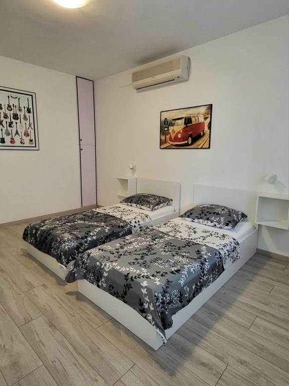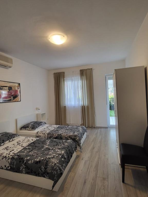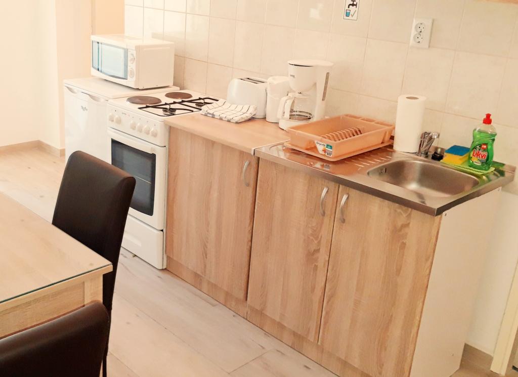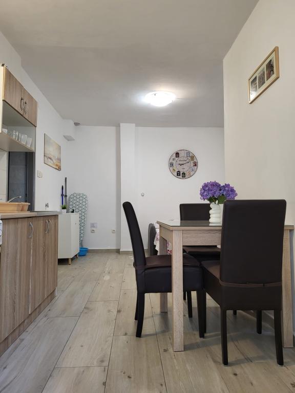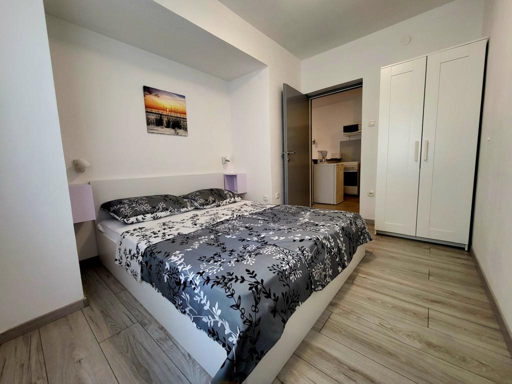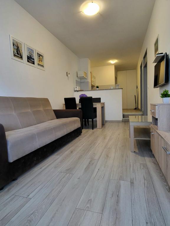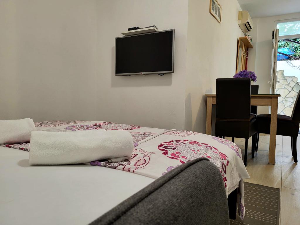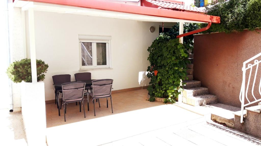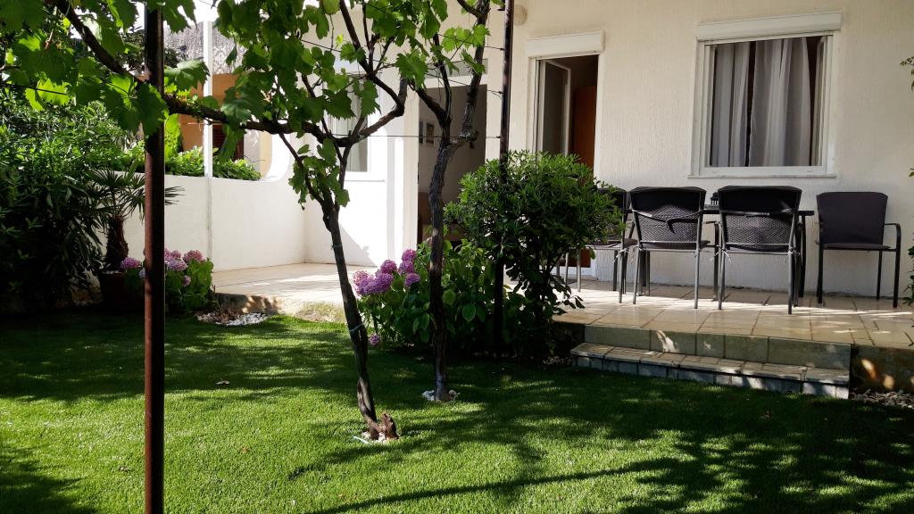 Kompletně zařízené apartmány s terasou a malou zahrádkou, bezplatné parkování, Wi-Fi, 280m od moře, 50 obchodů a kavárna, klidná, 12min chůze podél pobřeží do města.
