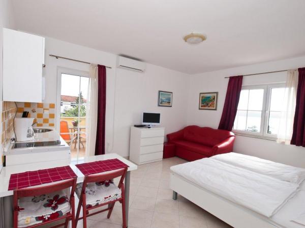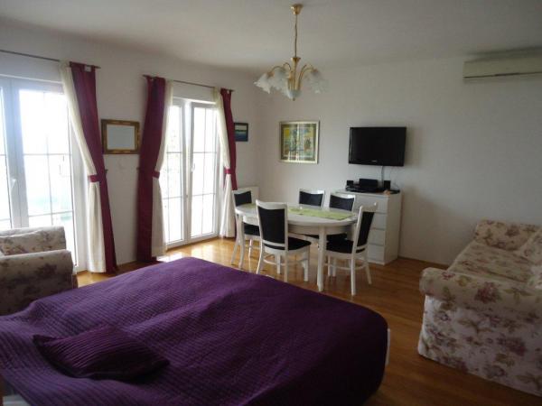 Pobytová taxa je v ceně.Vůně rozmarýnu, šťavnaté fíky na zahradě a západ slunce je úchvatný! Tyto apartmány s duší Středozemního moře se nacházejí v klidné části Crikvenica, Kvarner drahokamy. Romantická, pohodlné, ideální pro novomanžele na svatební cestě a rodiny s dětmi. Všechny apartmány mají výhled na moře, ústřední topení, LCD TV, WIFI, klimatizace ..... Zahrada, která se rozšíří do přibližně 600m2 nabízí zábavu a relaxaci. Takže si můžete vychutnat odstín rodáka fíky nebo o průměru 4,5 metru bazén s terasou, kde od rána do večera, naše hosty, kteří hledají osvěžení a dětské zábavy. Jídlo není přítomen, protože pokud si stačí řešit spravljanjem grilování, bude přátelské hostitelé rádi připravíme žádost mořské plody, jako chobotnice pod zvonem,
