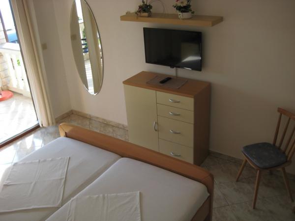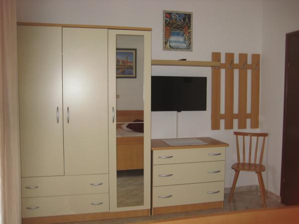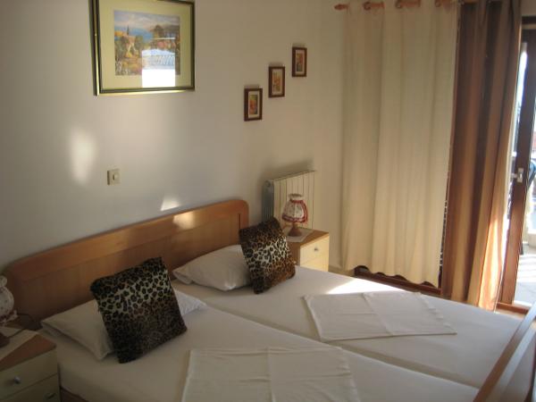 Pobytová taxa není v ceně.V těchto apartmánech jsme strávili úžasný čas. Dobrá lokalita, čisté a ploché pokoje s dobře vybaveným zařízením, nedaleko od moře, spousta pláží do 5-10 minut chůze. Většina pokojů má samostatný vchod, což je velmi pohodlné. Pokoje jsou dobře navrženy s ohledem na udržení teplotní rovnováhy, takže nepotřebujete klimatizaci. Poloha apartmánů je také dobrá, protože se autem do 5 minut dostanete k nejméně třem supermarketům, včetně velkého Lidlu do 10-15 minut chůze. Absence hlučných a brutálních Rusů je výsadou. Voda v moři je čistá a klidná a pláže jsou mírně přeplněné, ale vždycky si najdete nějaké volné místo. Možná bude trochu slabší wi-fi vadit, ale pro nás to nebyl velký problém, protože jsme používali internetový roaming. Majitelé byli velmi pohostinní a srdeční.