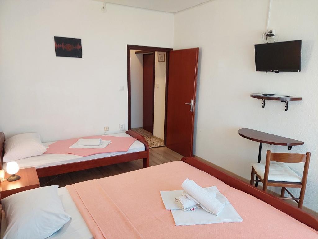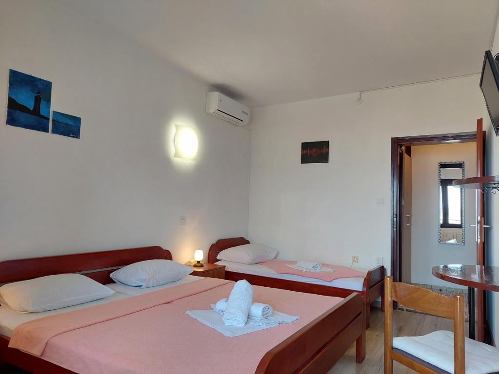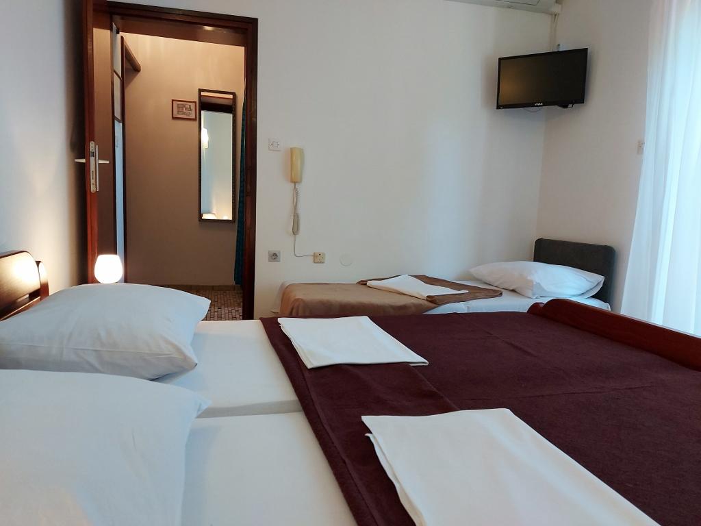 PANSION KLAUDIJA s rodinnou tradicí více než 40 let, nabízí ubytování ve 14 plně vybavených pokojích: sprcha, WC, balkon (12 pokojů s výhledem na moře), ústřední topení, telefon, SAT/TV a klimatizace. K dalšímu vybavení patří: - soukromé parkoviště, - společenská místnost se SAT/TV, - trezor, - restaurace s barem a zahradní terasou, - krásná zahrada s fontánou. - bezplatný internet (Free WIFI) Naši hosté, stejně jako všichni ostatní návštěvníci, mají k dispozici restauraci s 80 místy k sezení a otevřenou terasu. V příjemné atmosféře s přátelským personálem si mohou vychutnat mnoho specialit místní i mezinárodní kuchyně.