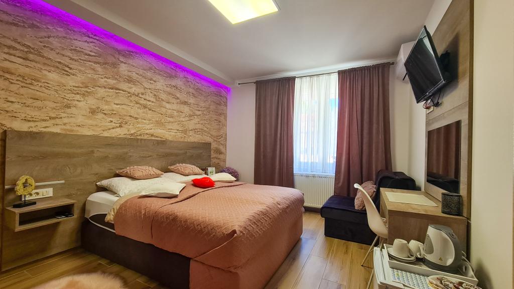 Pokoje jsou vybaveny nadstandardními hotelovými postelemi, s kvalitními matracemi, na každém pokoji je LCD TV, bezplatné Wi-Fi a vlastní koupelna je zařízena podle nejmodernějších standardů. Stejně tak je každý pokoj vybaven speciálním LED osvětlením pro vytvoření příjemné atmosféry, která přispěje ke zvláštní atmosféře během vašeho pobytu u nás. U objektu jsou parkoviště, která není nutné zvlášť rezervovat. Na pokojích vás přivítá drobná pozornost v podobě instantní kávy, čokoládových tyčinek, bonbonů a na přání můžete využít i naši wellness a spa oázu umístěnou v areálu.