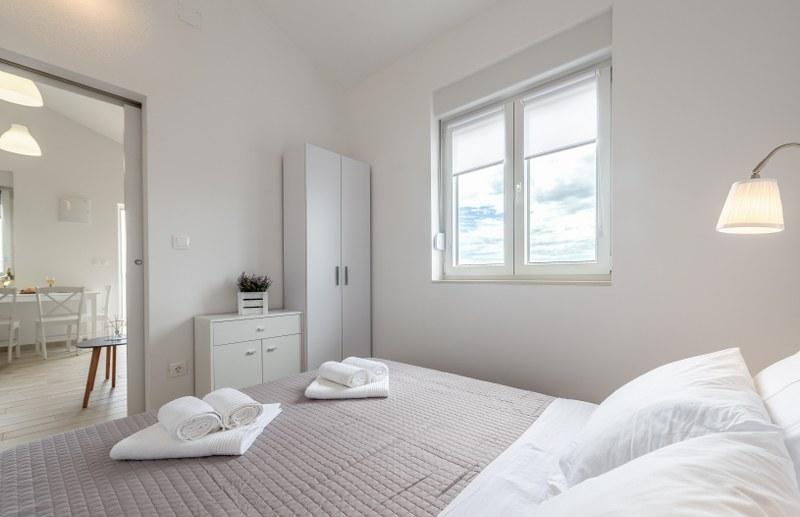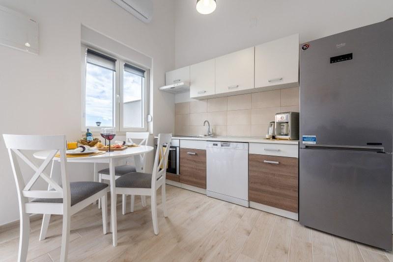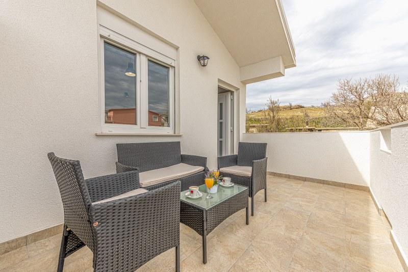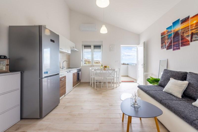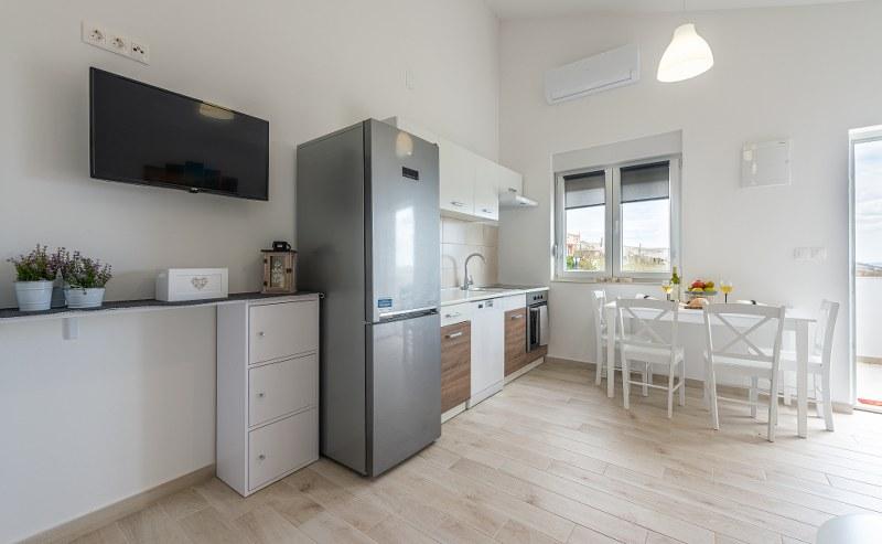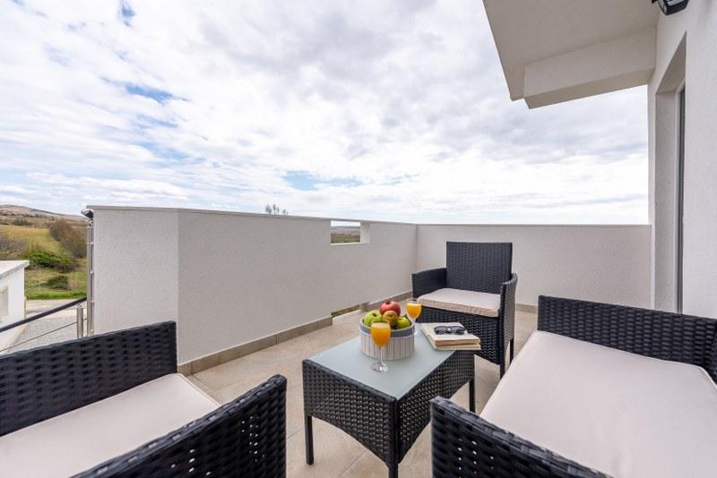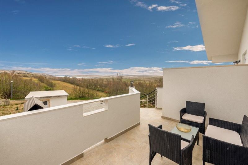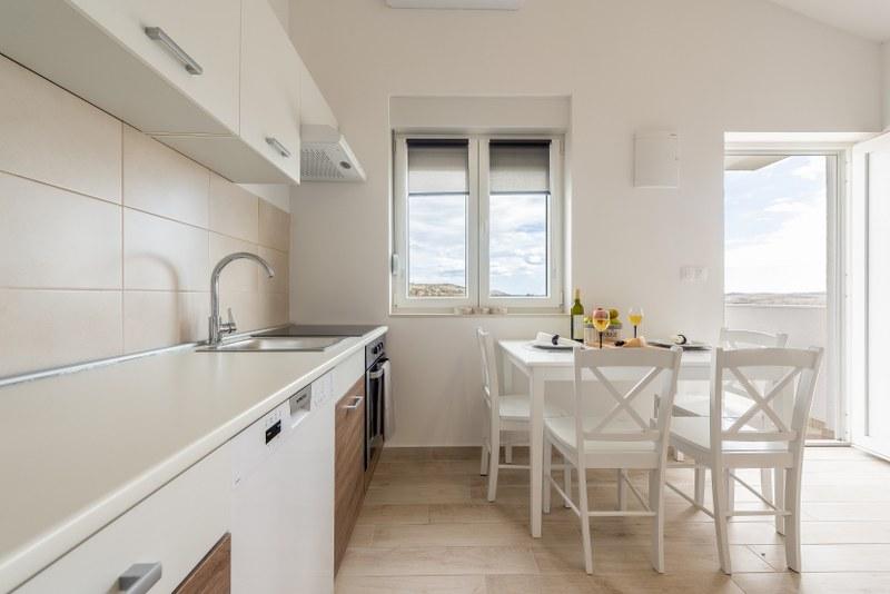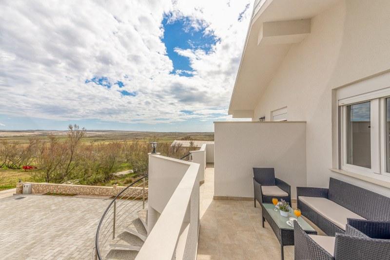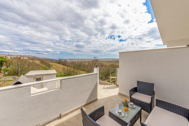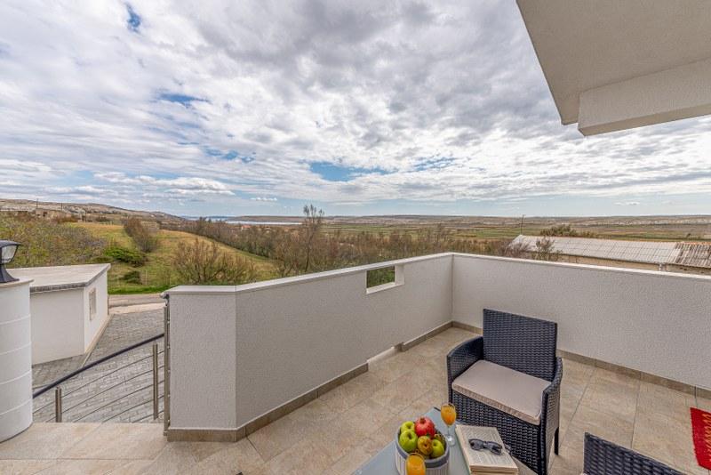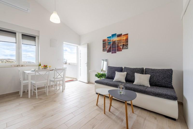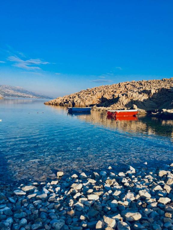 Moderní nově zařízené apartmány (2) na klidném místě Stara Vas na ostrově Pag. Místo je 3 km od pláže a obchodů (Dinjiška). Je ideální pro odpočinek na terase, v tichu s výhledem na moře. Pokud hledáte odpočinek od davů a hluku, jste na správném místě. Pokud hledáte zábavu nebo vás zajímají památky a historie, město Pag je vzdálené 11 kilometrů. Zařízení jsou kompletně vyzdobena; Skládají se z obývacího pokoje, kuchyně, ložnice, koupelny a terasy. V obývacím pokoji je pohovka s možností roztahování, smart TV, trezor, klimatizace. Kuchyň s myčkou, sklokeramickou deskou, troubou, velkou lednicí, kávovarem s filtrem, varnou konvicí. Ložnice s manželskou postelí, dvěma nočními stolky a dvěma nočními lampami, skříní a komodou navíc. Vybavená koupelna s pračkou (k dispozici žehlička a vysoušeč vlasů). Tetrace s venkovním nábytkem. - Wi-fi k dispozici - Parkování zdarma - Možnost použít venkovní krb (gril)