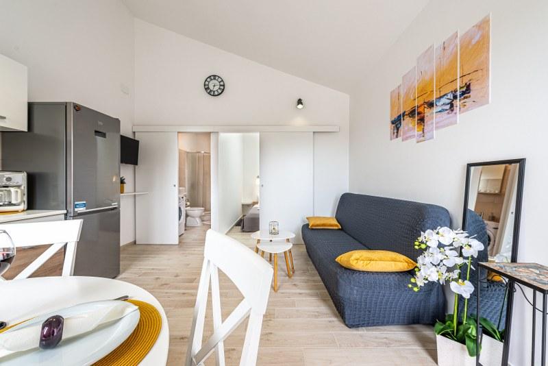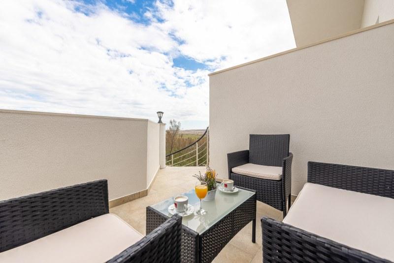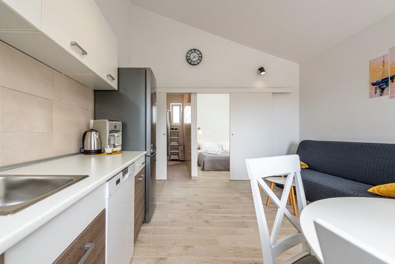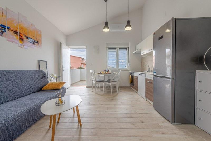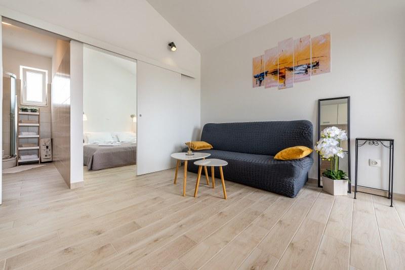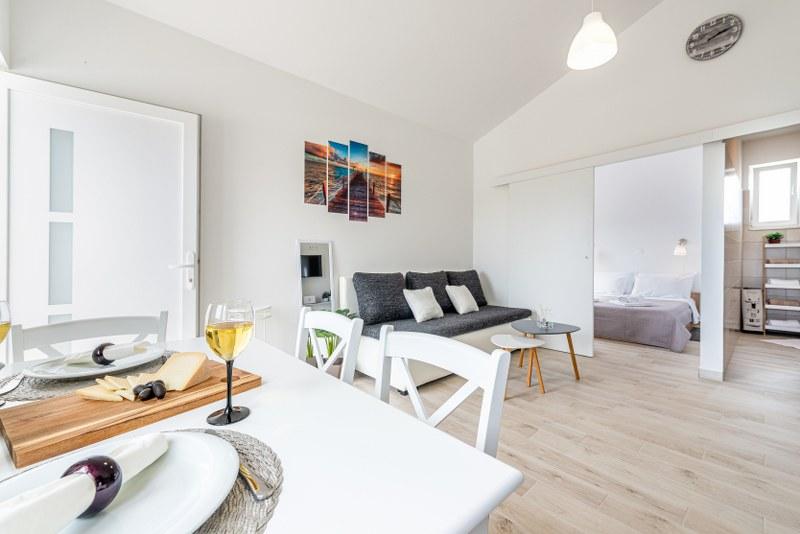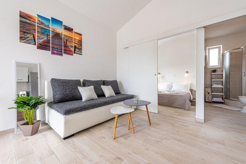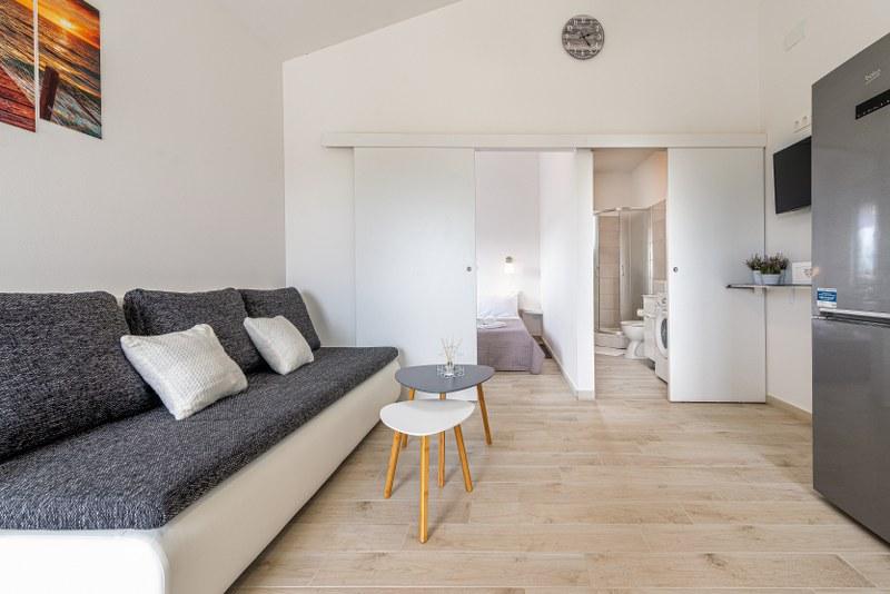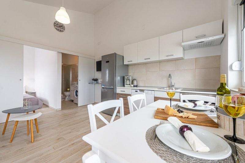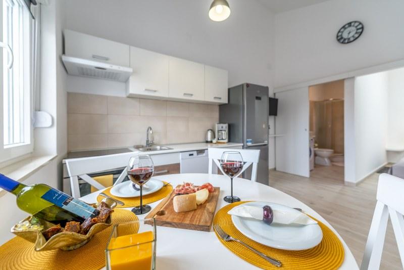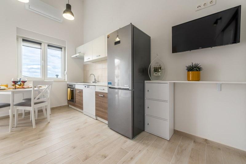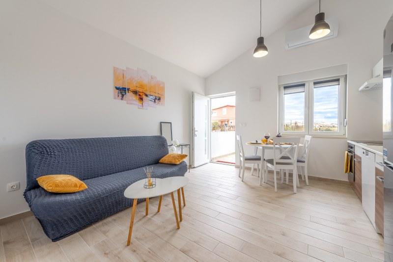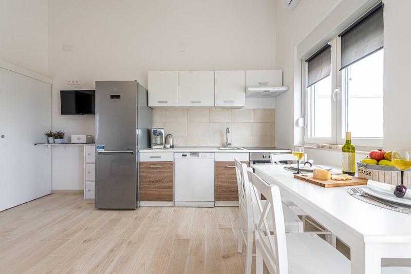 Moderní nově zařízené apartmány (2) na klidném místě Stara Vas na ostrově Pag. Místo je 3 km od pláže a obchodů (Dinjiška). Je ideální pro odpočinek na terase, v tichu s výhledem na moře. Pokud hledáte odpočinek od davů a hluku, jste na správném místě. Pokud hledáte zábavu nebo vás zajímají památky a historie, město Pag je vzdálené 11 kilometrů. Zařízení jsou kompletně vyzdobena; Skládají se z obývacího pokoje, kuchyně, ložnice, koupelny a terasy. V obývacím pokoji je pohovka s možností roztahování, smart TV, trezor, klimatizace. Kuchyň s myčkou, sklokeramickou deskou, troubou, velkou lednicí, kávovarem s filtrem, varnou konvicí. Ložnice s manželskou postelí, dvěma nočními stolky a dvěma nočními lampami, skříní a komodou navíc. Vybavená koupelna s pračkou (k dispozici žehlička a vysoušeč vlasů). Tetrace s venkovním nábytkem. - Wi-fi k dispozici - Parkování zdarma - Možnost použít venkovní krb (gril)