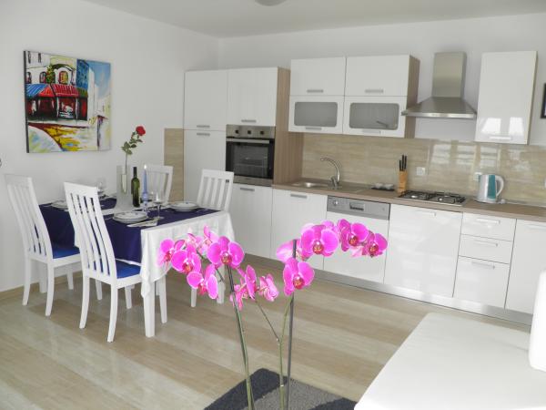Perla Apartmány se nachází na pláži 10 m od pláže s klimatizované ubytovací jednotky, bezplatné bezdrátové připojení k internetu (WiFi). Jsou umístěny v obci Dinjiška. Všechny apartmány mají terasu nebo balkon s výhledem na moře. Všechny jednotky jsou vybaveny TV s plochou obrazovkou, pohovku a plně vybavenou kuchyň s myčkou na nádobí. Vlastní koupelnu s vanou a sprchou, vysoušečem vlasů. Apartments Perla patří společná zahrada s grilem. Hosté mohou využít bezplatné parkoviště. Ostrov Pag s pevninou mostem 5 km daleko. Historické město Zadar a mezinárodní letiště Zadar se nachází 35 km.
