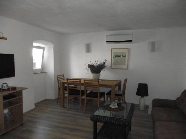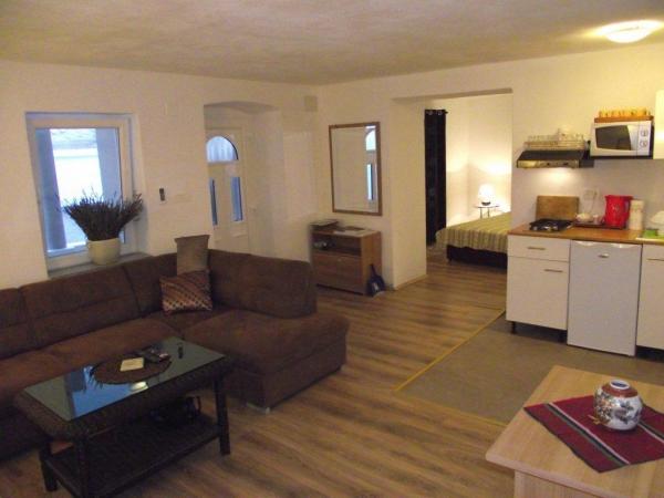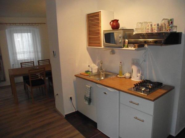 Apartmány se nacházejí v třípatrové secese ve středu a během první poloviny 2012th Cokoliv. jsou po kompletní rekonstrukci. V blízkosti domu je obchod, restaurace s terasou a barem a galerie, muzea a kostely. Parkoviště se nachází asi 200 metrů od hotelu, nehlídané, nelze rezervovat zdarma. Domácí zvířata jsou povolena s předchozím oznámení. Studio apartmán se nachází v přízemí, velikost 40 m2. V popředí je krytá terasa, která patří k bytu. Byt se skládá z velké ložnice s manželskou postelí, obývací pokoj s rozkládací pohovkou pro dvě osoby a koupelna se sprchovým koutem a WC. Pod ložnicí a obývacím pokojem je pokryta dřevem laminátu. Byt je vybaven klimatizací (topení / chlazení), satelitní TV, trezor, kuchyň. V apartmánu je 1 a 2, které jsou umístěny na druhém a třetím patře vstoupil přes velkou slunnou terasou. Apartmán 1, velikost 40 m2 se skládá z ložnice, obývací pokoj a koupelnu. Ložnice s manželskou postelí má vestavěné skříně. Obývací pokoj je situován na rozkládací pohovkou pro dvě osoby, kuchyně a velký stůl se čtyřmi židlemi. Byt je vybaven klimatizací (topení / chlazení), satelitní TV, trezorem .. Apartmán 2, je velikost 40 m2 se nachází ve třetím patře a s