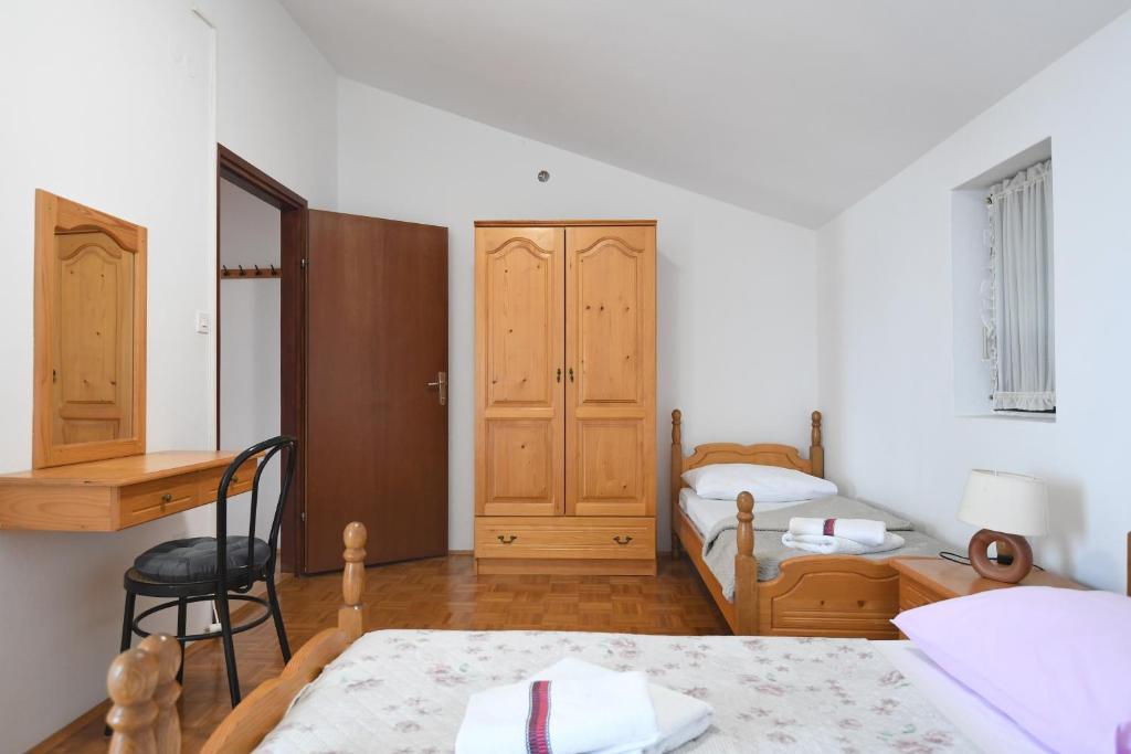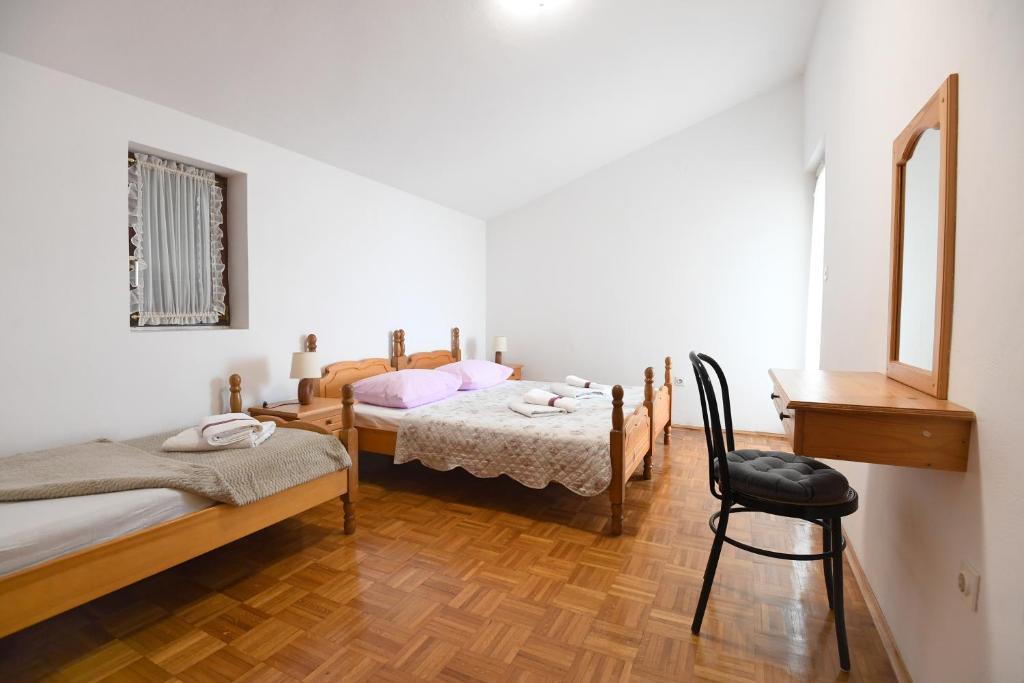 Apartmány Erna je komplex 3 apartmánů v domě. Apartmány jsou pohodlné a vybavené klimatizací. Apartmán A1 se nachází v přízemí budovy, sestává ze 3 ložnic, kuchyně, toalety, jídelny a obývacího pokoje. Kuchyň je plně vybavená. Pokoje mají manželské postele, jak je znázorněno na obrázcích. Apartmány A2 a A3 se nacházejí ve druhém patře budovy. Každý apartmán má dvě ložnice a každá ložnice má vlastní balkon. Kuchyně v těchto apartmánech jsou plně vybavené a balkon nabízí krásný výhled na moře. Uvnitř budovy je dům vhodný pro grilování a pochutnání si. Parkování je zajištěno, parkovací místa jsou v přírodním stínu. Ve vesnici jsou dvě pláže, písečná a oblázková, také znázorněné na obrázcích. V obci je kostel, restaurace a dvě kavárny. Ve městě, stejně jako na celém ostrově, se pořádají četné akce, které činí náš ostrov smysluplnějším a poskytují našim hostům skutečný zážitek z moře.