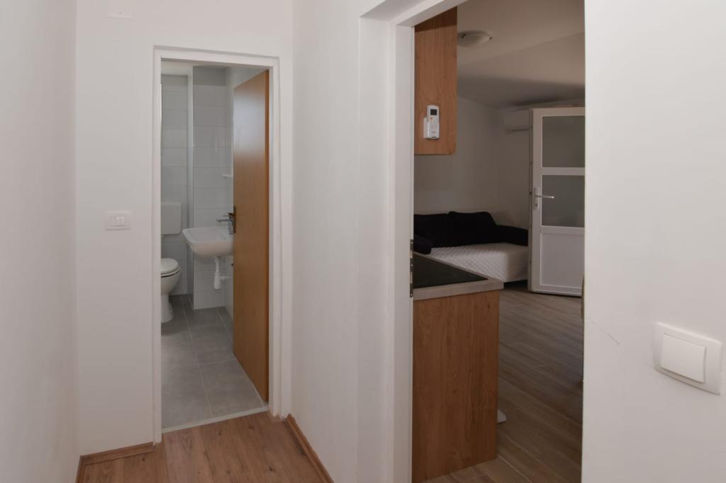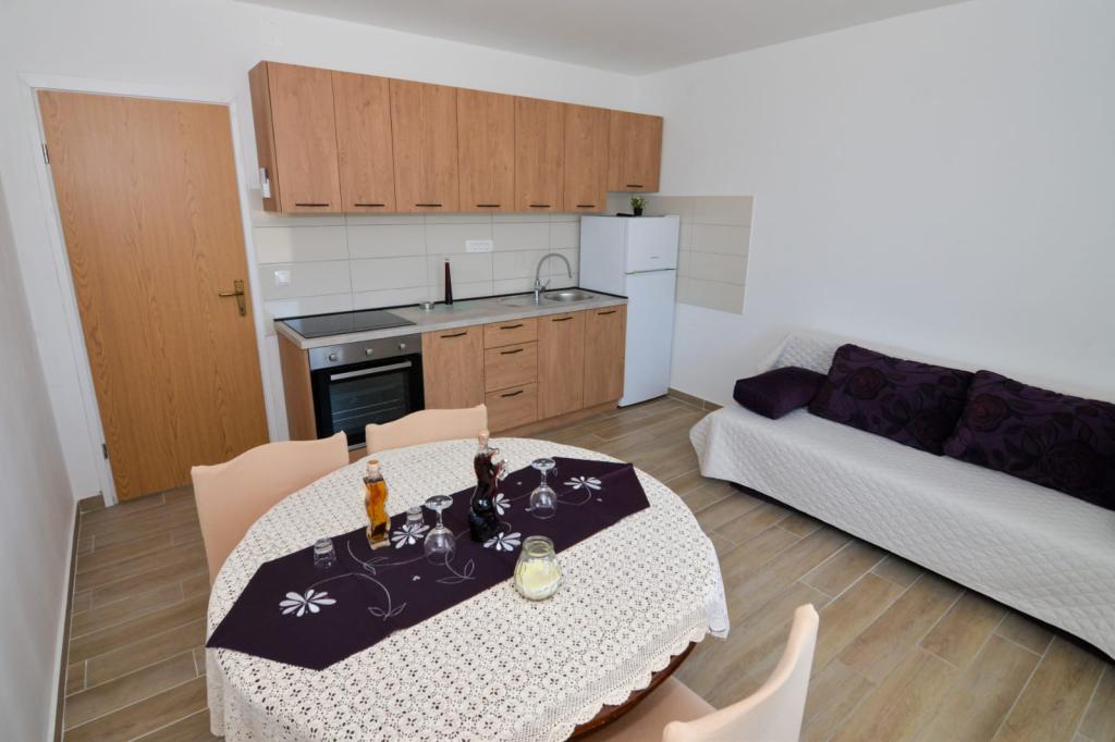 Moderní byt na ostrově Pašman, v Dobropoljana, která se nachází u moře. V areálu se nachází hned vedle pláže, v blízkosti obchodů s potravinami a restaurace a kavárny.