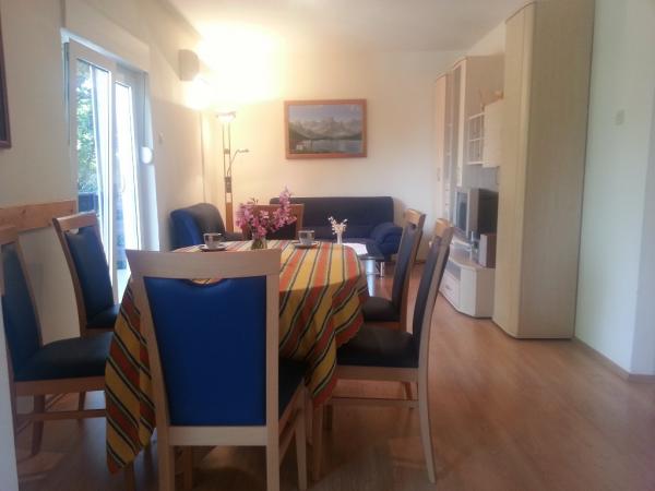 Donji Karin se nachází v borovém lese s výhledem na park. Donji Karin je obklopen čtyřmi národními parky (Kornati, Paklenica, Krka a Velebit) a několik přírodních parků (Zrmanj, Karišnica). Také oblast je bohatá na archeologické lokality, jako je staré město Asseria z římských dob, věže a khans Osmanské říše. Během letních mnoha kulturních a uměleckých akcí v oblasti životního prostředí (prisnac, noční rybolov, koncerty, atd.). Hosté mají možnost apartmánů, spočívající na třech moří (Karin, Novigradsko a Jadran), nyní středomořské klima a cvrlikání ptáků. Plně vybavené a moderní apartmány v klidné části Dolní Karina byly umístěny ve třetí řadě k moři. Hosté mají možnost využití externích zařízení, jako je opékání a vychutnat místní speciality vaření na rožni. V areálu se nachází 3 minuty chůze od pláže a restaurace a 5 minut chůze od obchodů.