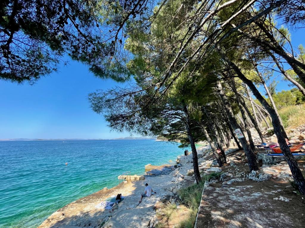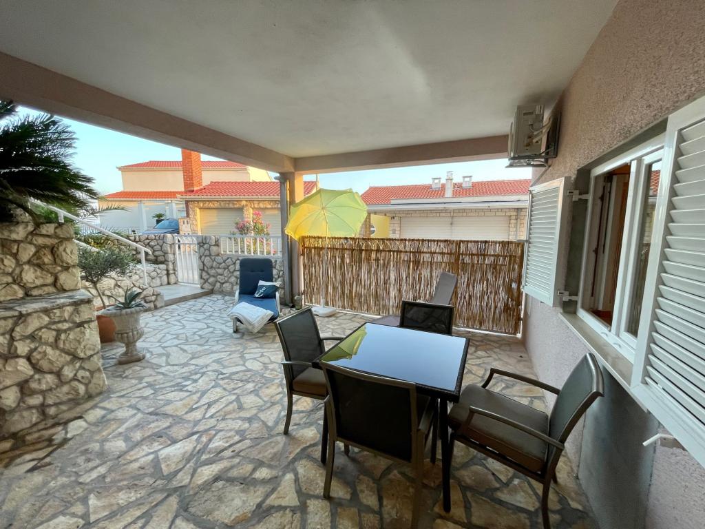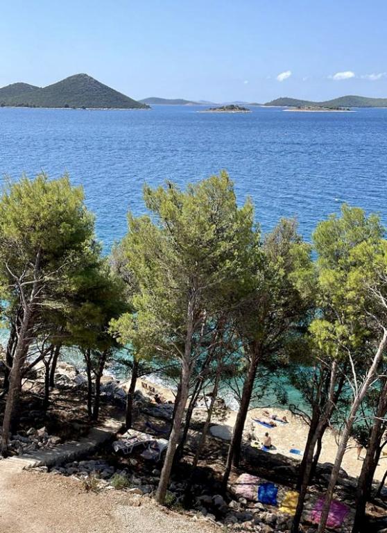 Plně vybavený apartmán (wifi, klimatizace) v klidné víkendové vesničce Dolaška Draga (Drage), vedle Pakoštanu. Apartmán 2+2, cca 45 m2, s velkým dvorem, se nachází v přízemí vícepodlažního rekreačního domu, který se nachází ve druhé řadě k moři, ale jako by byl první. Nádherný výhled se rozprostírá na menší ostrovy, Arta Vela, Arta Mala, Vrgada a národní park Kornati. Parkovací stání je zajištěno u domu nebo na parkovišti 10m od domu. První pláž, bezprostředně pod domem (20m) je betonová (kamenné plošiny) nebo skalnatá, se zajištěným vstupem do moře (schody, skokanský můstek) a přírodním stínem tvořeným krásným borovým lesem, přes který se táhne promenáda na druhou. pláž (150m) s drobným štěrkem. Ideální pro děti! Nechybí ani různá zařízení (restaurace, kavárna, hřiště pro děti). Na tuto pláž se dostanete pěšky nebo autem přes vesnici, stejně jako na třetí pláž s malými oblázky (300 m). Tato krásná oáza se nachází mezi Zadarem (30 km) a Šibenikem (30 km). V bezprostřední blízkosti se nachází PP Vranské jezero (2 km).