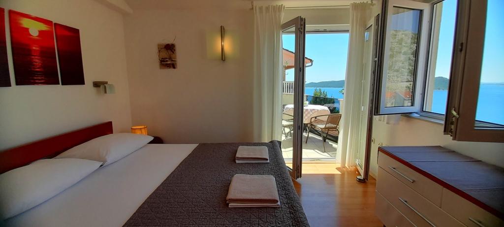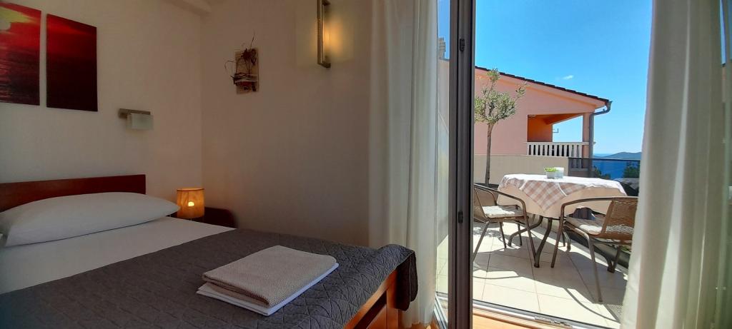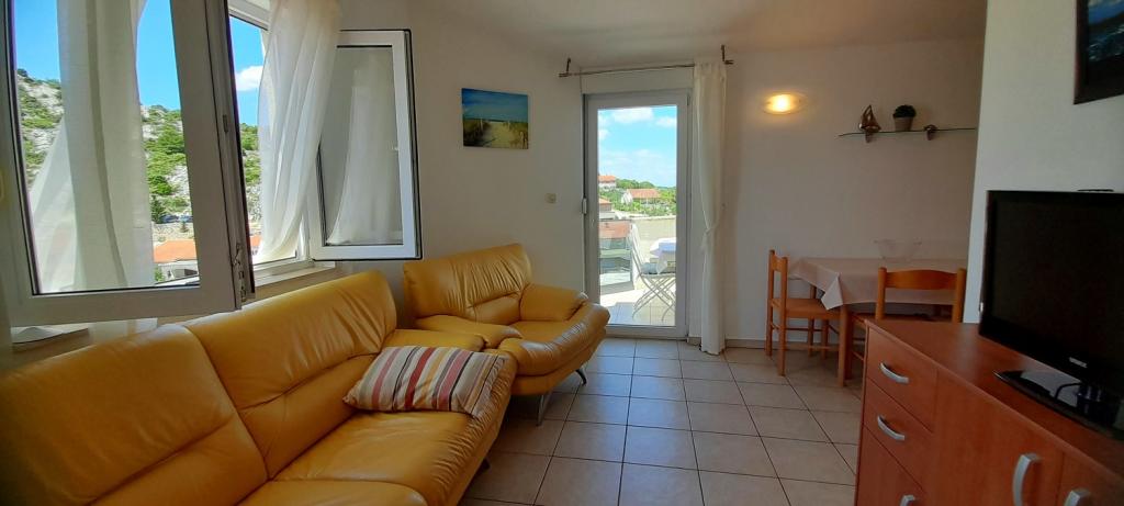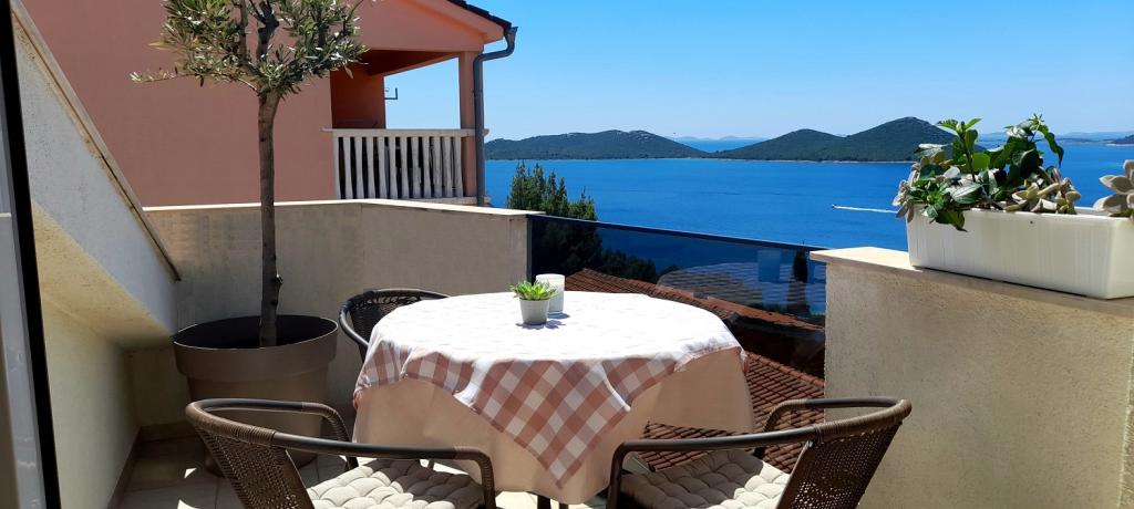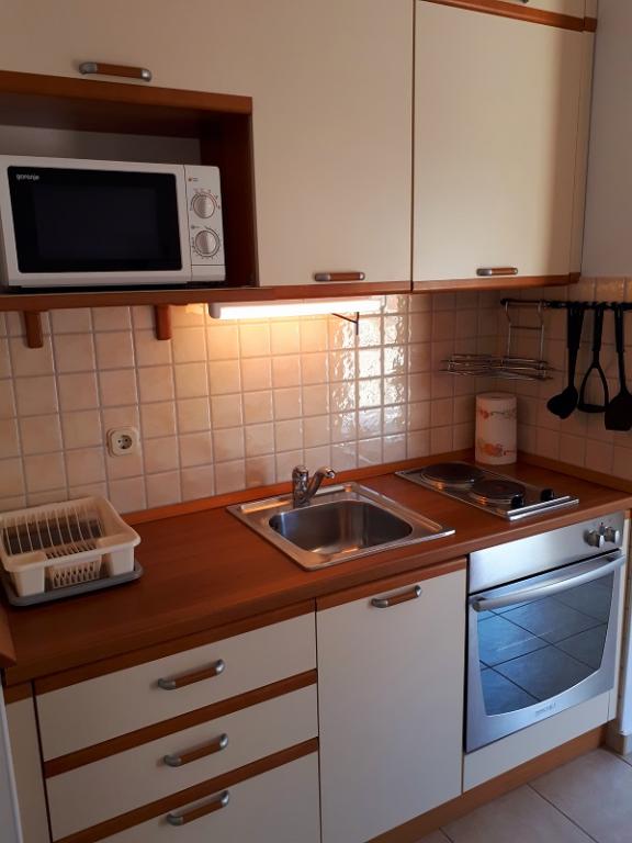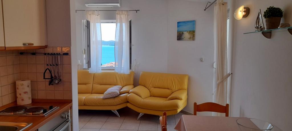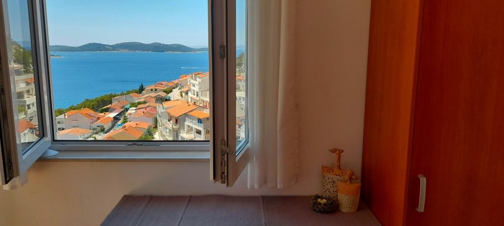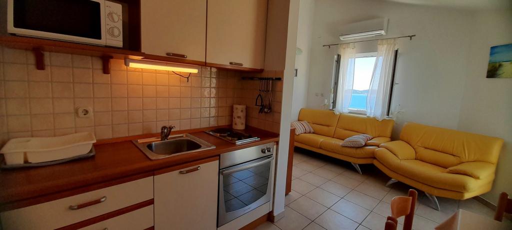 Apartmán Sea View se nachází v městečku Drage, v zátoce Dolaška draga, kde je velká oblázková pláž a nespočet malých dlážděných pláží. Hosté mají k dispozici také nádhernou promenádu "lungo mare", dětský park a několik útulných kaváren. Byt se nachází ve třetím patře malého obytného domu a nabízí nádherný a jedinečný výhled na moře. Je to 5 minut chůze od pláže. Byt má dvě ložnice, koupelnu, kuchyň s obývacím pokojem a třemi balkony a hosté mají k dispozici dvě klimatizace, WiFi plochý internet, hlídané parkovací místo, pračku, kávovar...