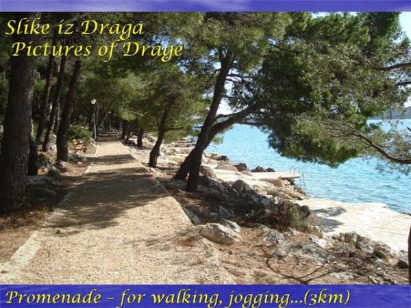 Kompletně a moderně vybavené apartmány v klidném místě Dolaške Drage, které se nachází třetí řada od moře. Objekt je 5 minut chůze od moře. Terasa nabízí krásný výhled k moři. Vedle moře je borovicový les s promenádou. V blízkosti národního parku Kornati, národního parku Krka a přírodního parku Vranjsko jezero. Vedle Vranjského jezero je 50 km dlouhá cyklostezka, která je pro cyklisty velice zajímavá. V bezprostřední blízkosti (5 km) je největší zábavní park Fun Park Biograd.