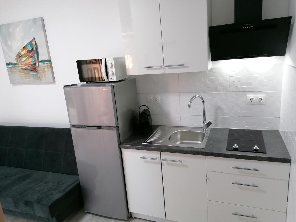 Apartmán je zcela nový, zařízený a čistý, moderně vybavený. Okolí je docela klidné, doporučujeme pro klidnou dovolenou s rodinou, k dispozici je také park pro malé děti. Apartmán se nachází v zadní části domu, kde slunce svítí pouze v časných ranních hodinách.