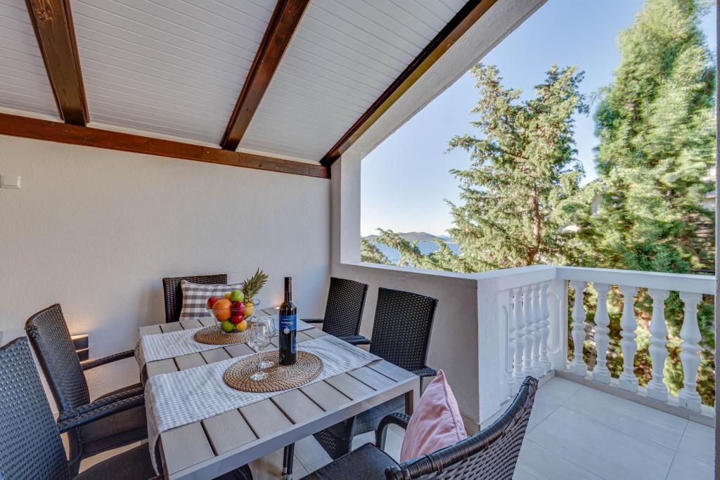 dům je na pěkném místě , s úžasným výhledem na moře, aparmány super, doporučujeme, výborná paní domácí