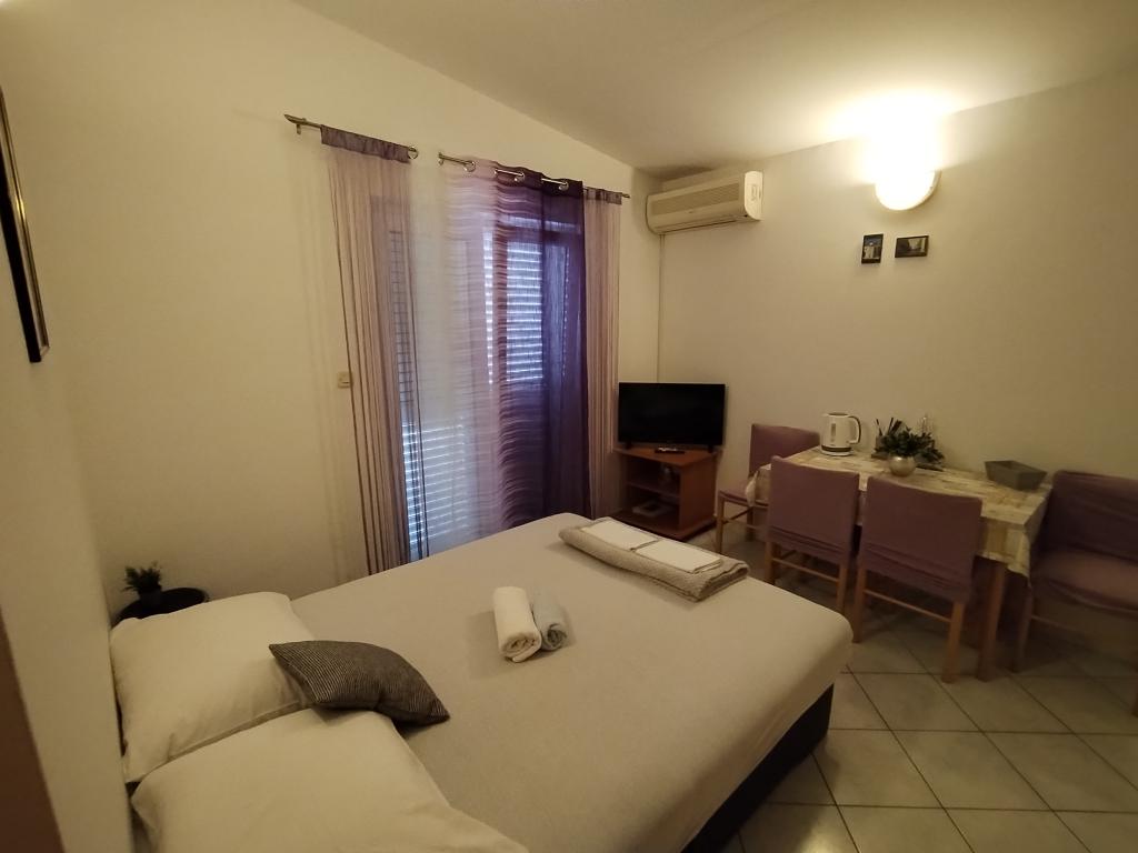 Apartmány Marko jsou plně vybavené apartmány pro čtyři osoby. Apartmány se skládají z ložnice s manželskou postelí a šatní skříní, koupelny se sprchovým koutem, obývacího pokoje s lůžkem pro dvě osoby a TV. Kuchyň je vybavena veškerým nádobím, mikrovlnnou troubou, varnou konvicí, lednicí. Žehlička a žehlicí prkno. Apartmán má klimatizaci, Wi-Fi a každý host má vlastní parkovací místo. Na pláž je to asi 900 m. Na jedné straně je krásné Vranské jezero a na druhé je moře. Obchod se nachází 10m od bytu. Návštěva vodopádů Krka, prohlídka Kornati nebo návštěva Zadaru a mořských varhan a mnoho dalšího učiní váš pobyt nezapomenutelným. Hostitel má vlastní víno, které každý host dostává na uvítanou. V objektu je také gril.