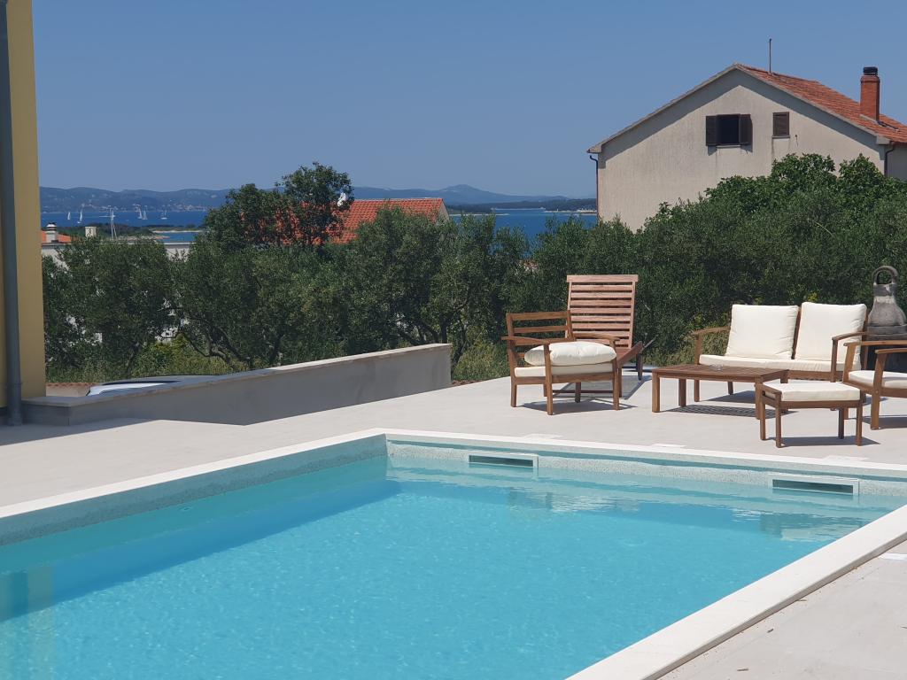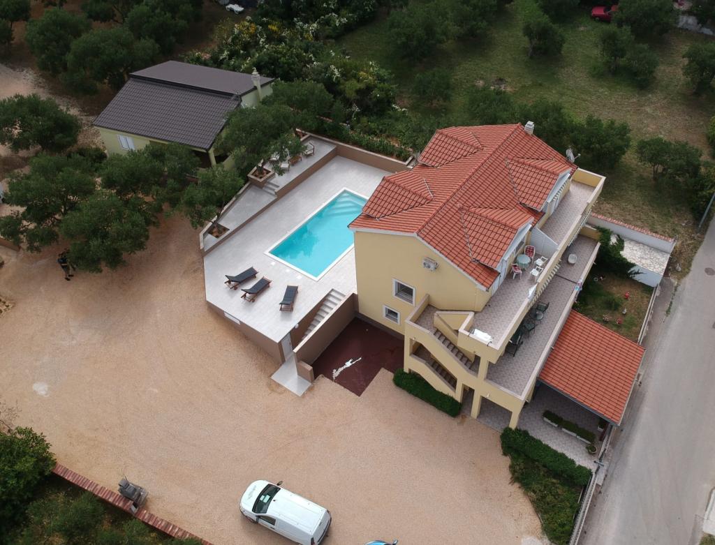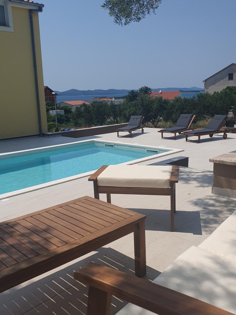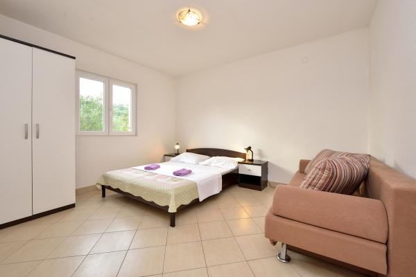 Nové plně a moderně vybavené apartmány s výhledem na moře, satelitní TV, klimatizací, kuchyní, WC sprcha, 2-3 minuty chůze k moři. Nemovitost se nachází v krásném olivovém háji, který pokrývá cca 2500 m2, se spoustou květin a zeleně. Zvláštním benefitem je nově vybudovaný bazén 32m2 s plaveckou plochou 200m2. Společné: gril k dispozici Apartmán číslo 1 se skládá z: 3 pokojů (včetně 2 ložnic), 55 m2, 4 +2 osoby. Vstup v přízemí, přes terasu do obývacího pokoje. Přízemí: ložnice 1 s manželskou postelí, obývací pokoj s kuchyní a pohovkou, ložnice 2 s manželskou postelí a rozkládací pohovkou, WC/sprcha Apartmány 2 a 3 se skládají ze 2 pokojů, z toho 1 ložnice, obývací pokoj obývací pokoj s kuchyní a posezením nábytek, WC/sprcha Relax House se skládá ze 3 místností včetně 2 ložnic, v obývacím pokoji je kuchyň a rozkládací pohovka, WC/sprcha se skládá ze 3 místností včetně 2 ložnic, obývacího pokoje a WC/sprcha