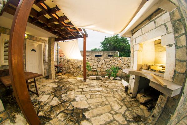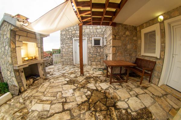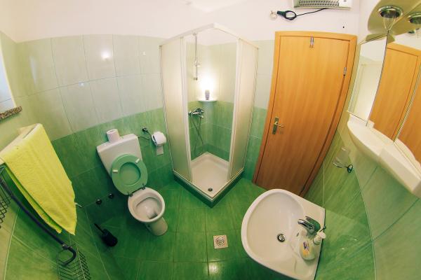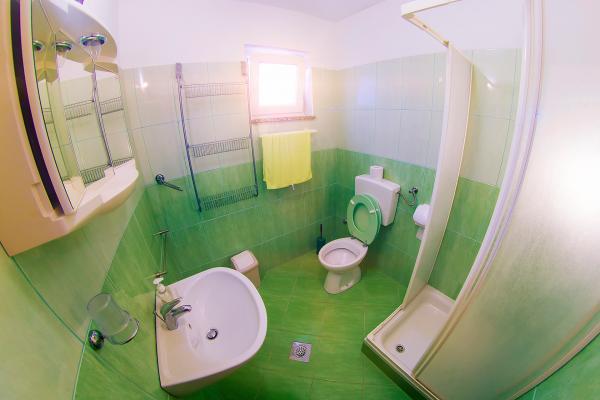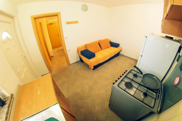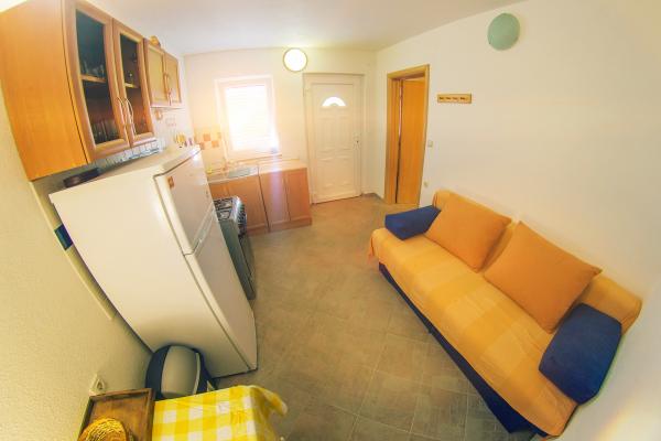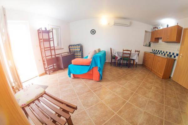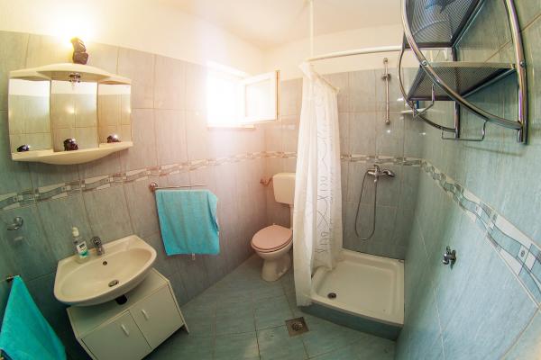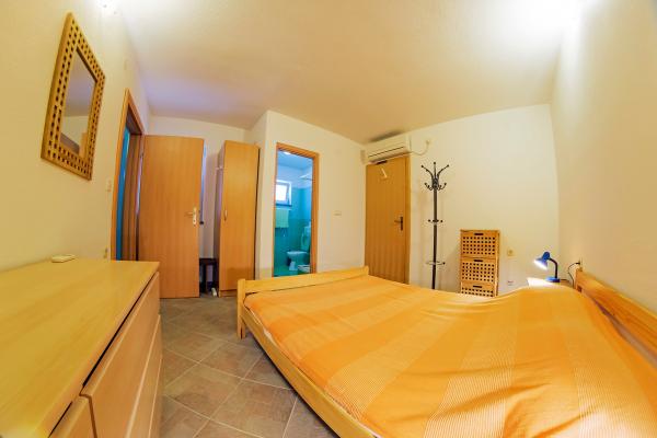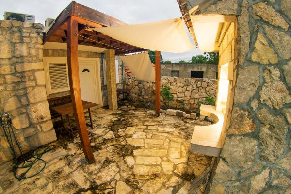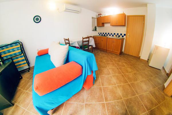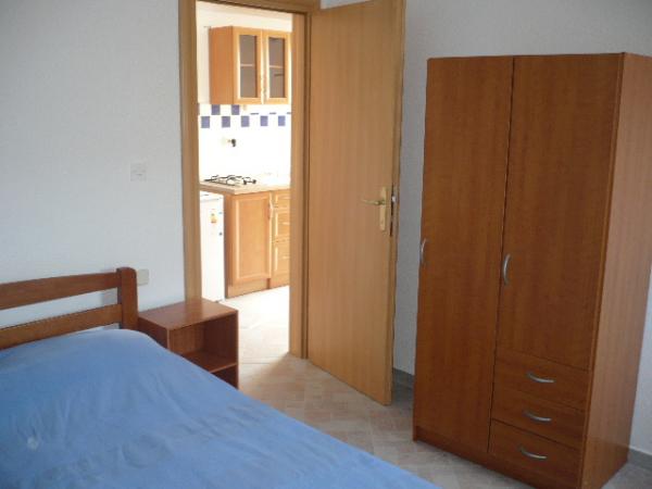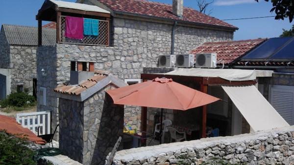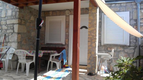 Obnoven kamenný dům z 19. století, se nachází v tiché boční ulici v neobydlených domů kolem něj. Ostatní obytné domy a ulice s motorovými vozidly se nachází 30-50 m. V domě máme parkoviště pro 3 auta. Dům má 3 samostatné apartmány vybaveny klimatizací, kterými jsou: - A 2 2 (a) je v přízemí byt 32 m2 (dveře v prvním obrázku) - A 2 2 (c) je přízemní byt, 28 m2 ze dvora (dvířka na čtvrté foto) - A 2 2 (b) je sada v prvním patře, 32 m2 Apartmány se skládají z: - koupelna se sprchou s teplou a studenou vodou, WC a umyvadlem, zrcadlem a skříní, - obývací pokoje, kde je také navíc rozkládací pohovka ve velikosti 2x1, 4 m vhodný pro 2 osoby a kuchyň s nádobím a plynovým sporákem, dřezem, ledničkou. Ložnice je vybavena jedním size postelí 2x1. 5m, skříň a stůl pro zavazadla. Pračka je společná a nachází se v kotelně ve dvoře. Klimatizace je v každém apartmánu.