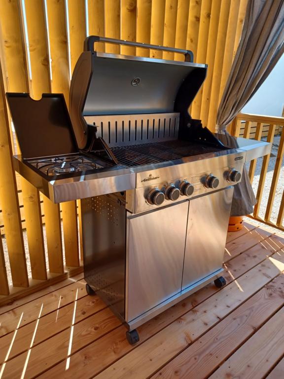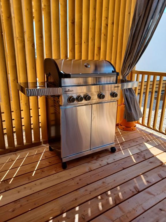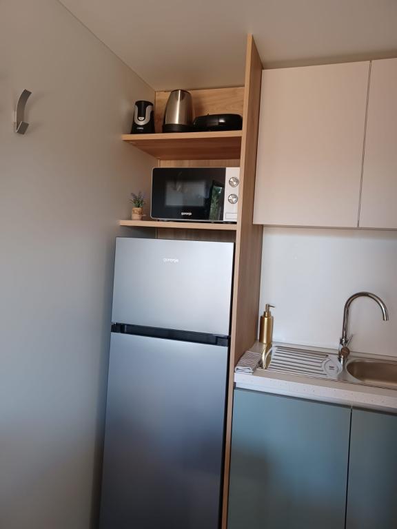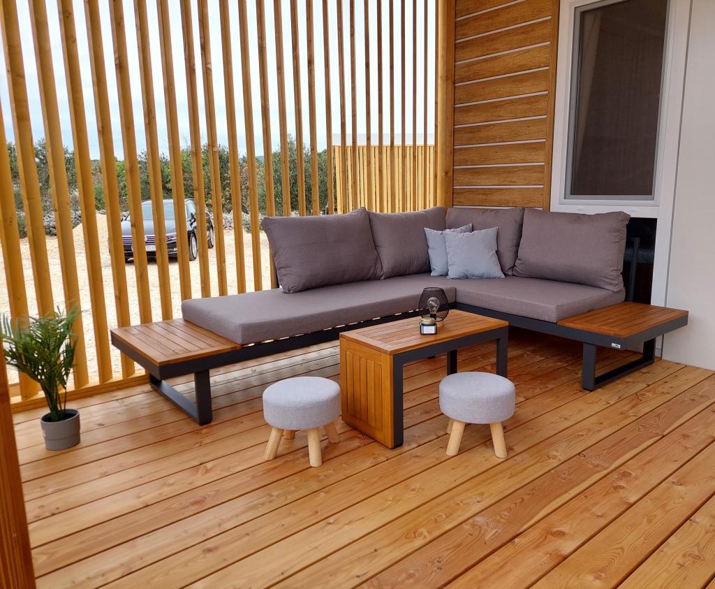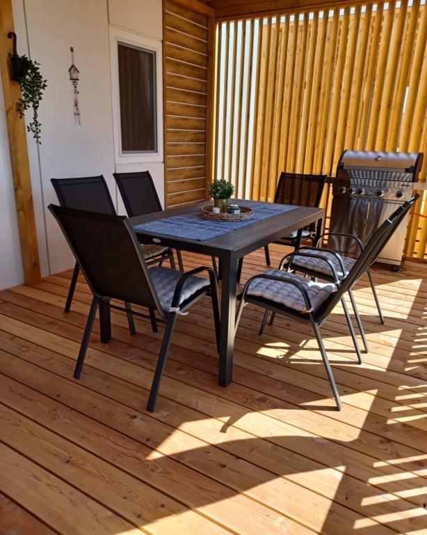 Blue Wave je zbrusu nový dům, který se začíná pronajímat od 1. dubna 2023. Dům je plně vybaven a má moderní design, 32 m2 krásně využité plochy. OBSAH: Plně vybavená kuchyně (mikrovlnná trouba, sporák, indukční varná deska, toustovač, myčka, stolní mixér, mixér, kompletní nádobí a malý invertor) 1 ložnice s manželskou postelí 160x200 1 ložnice se 2 lůžky 90x200 Obývací pokoj s třímístnou pohovkou, rozměry spaní 140x200 Jídelní kout 2 Koupelny plně vybavené (sprcha, WC, ručníky, fén) Terasa plně vybavená (nábytek pro relaxaci, jídelní stůl, gril...) Solární sprcha Parkovací místo Dětská postýlka Cestovní postýlka pro miminka