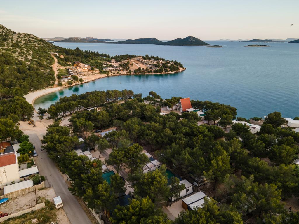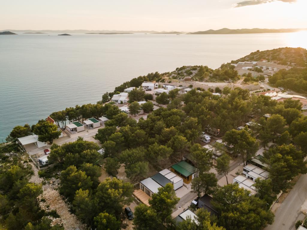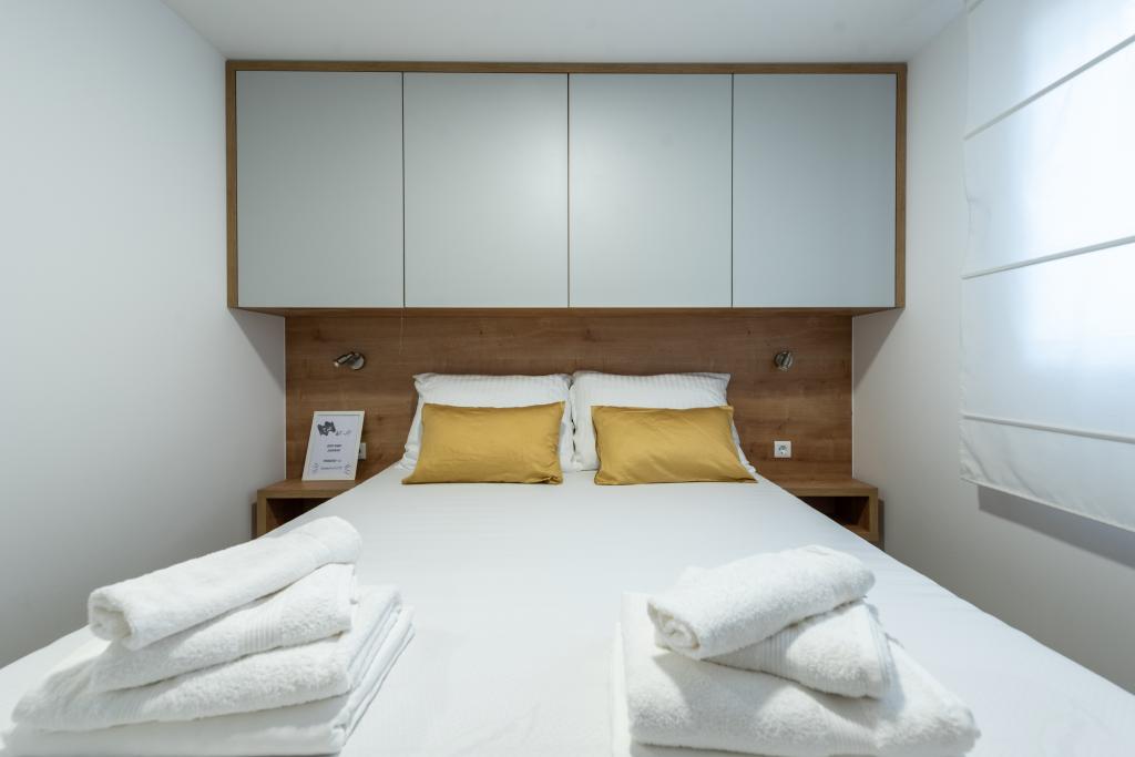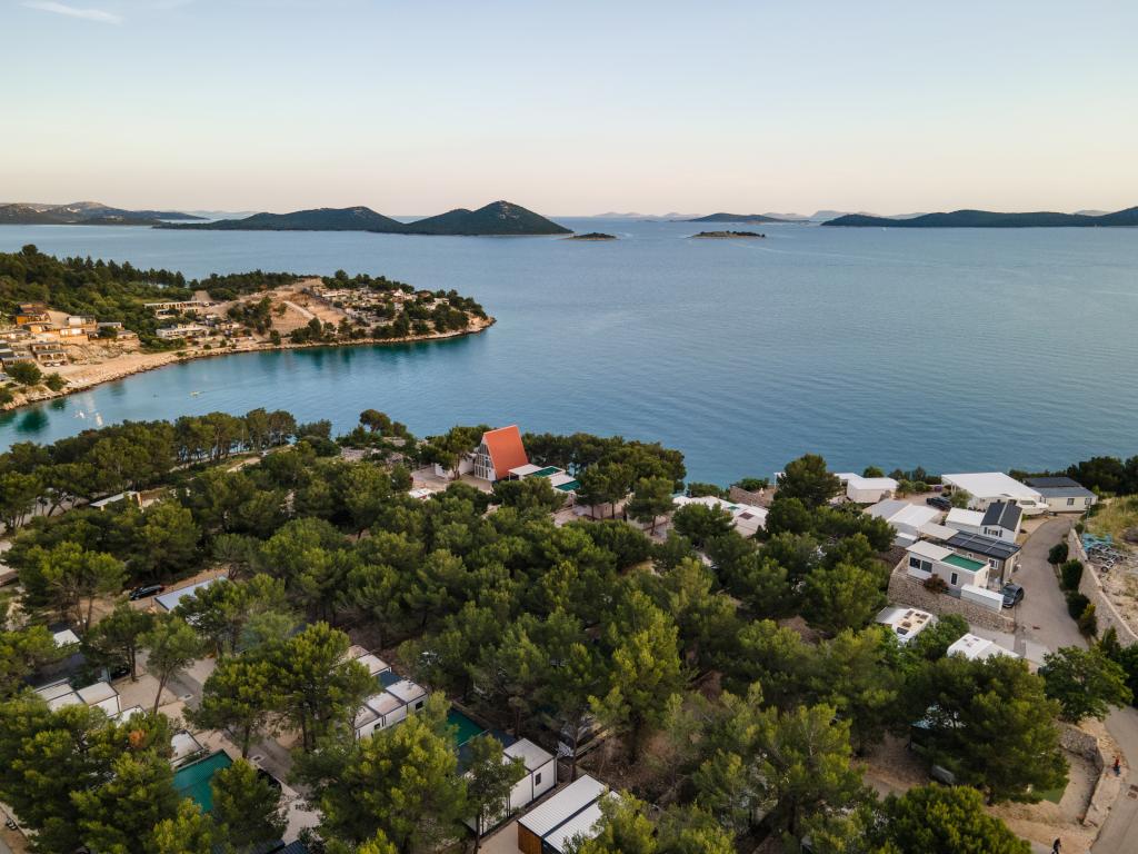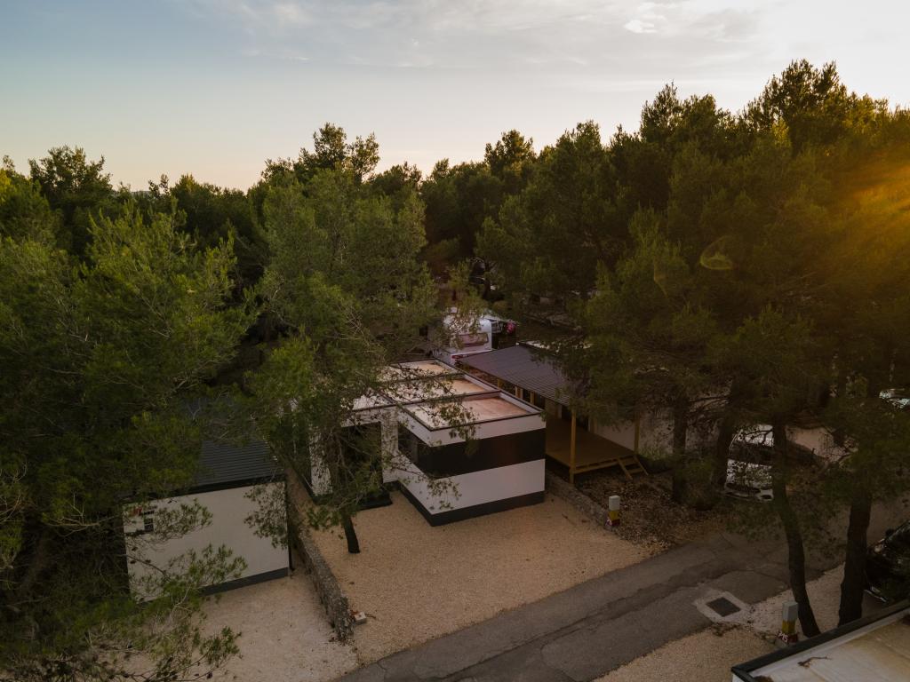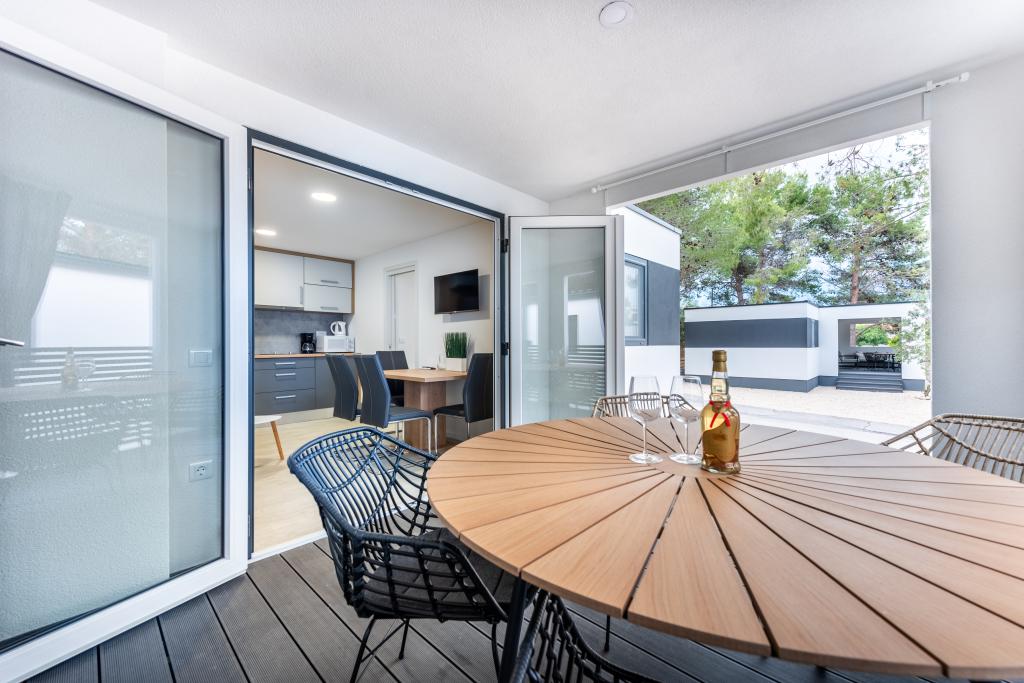 Luxusní mobilní dům, moderně vybavený s krásnou terasou, která uspokojí všechny chutě. Mobilní dům se nachází v kempu "Oaza mira" na skvělém místě ve stinném borovém lese, pouhých 50 m od krásné pláže. V bezprostřední blízkosti se nachází velký bazén a četná sportovní zařízení (tenisový kurt, hřiště na bocciu, dětské hřiště). V kempu je restaurace, supermarket a velké sociální zařízení s prádelnou. Každý dům má dvě ložnice, pokoj s manželskou postelí a pokoj se dvěma samostatnými lůžky. V obývacím pokoji může rohová sedací souprava sloužit jako přistýlka pro další dvě osoby. Dům má velký obývací pokoj, kuchyň s nádobím, sporákem a lednicí a jednu/dvě koupelny se sprchovým koutem, umyvadlem a WC. Mobilní dům má zahradu s terasou a přístřeškem.