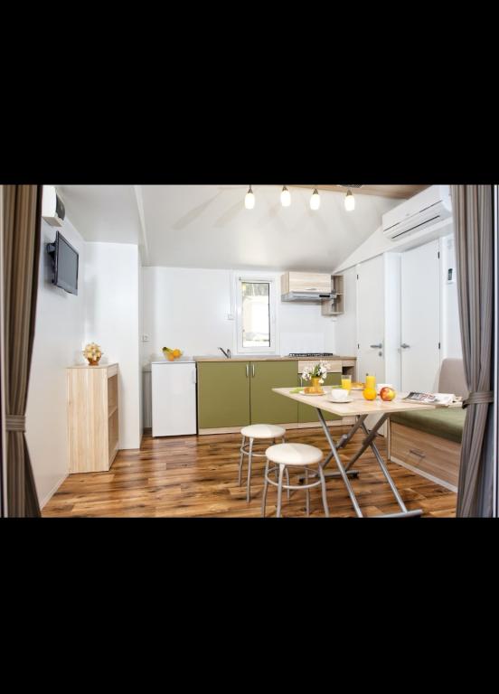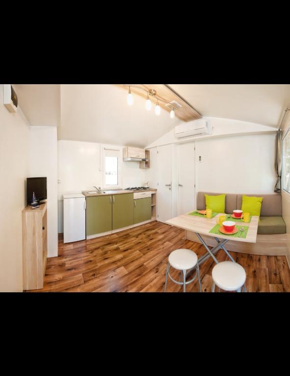 Klimatizovaný mobilní dům 30 m od moře se 2 ložnicemi, kuchyní, 2 koupelnami, obývacím pokojem, terasou, parkovištěm, venkovní sprchou, grilem, lehátky a soukromým parkovištěm. Domácí mazlíčci jsou povoleni.