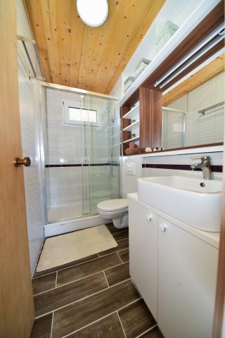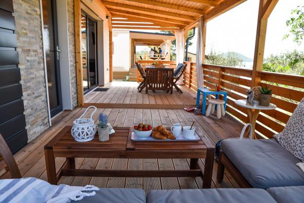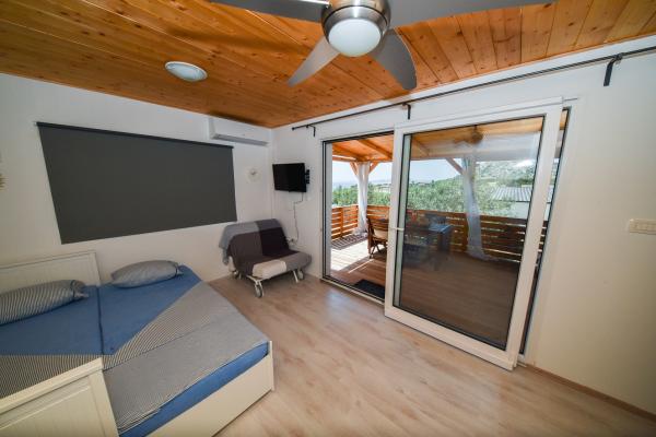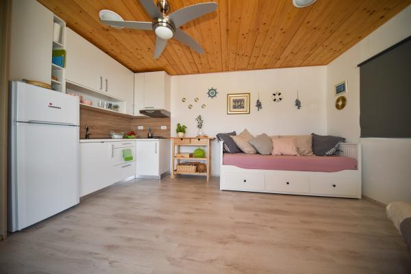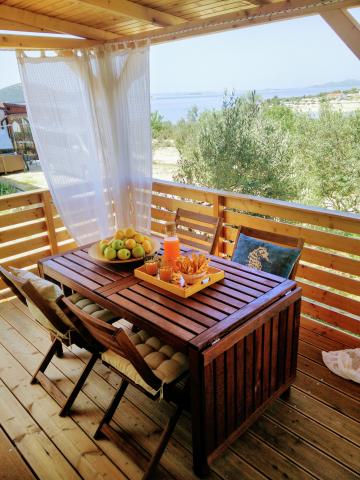 Nový, moderně vybavený mobilní dům v klidném rodinném kempu nedaleko Pakoštane. Dům je určen až pro 5 osob, ideální pro rodiny s dětmi, protože v bezprostřední blízkosti je dětské hřiště a klidná oblázková pláž je vzdálena jen 50 metrů. Dům má 1 ložnici, koupelnu se sprchovým koutem a prostorný obývací pokoj s kuchyní. Kuchyň je vybavena plynovým sporákem, ubrouskem, lednicí s mrazákem a příslušenstvím a jídlem pro přípravu jídel a jídel a nápojů. Obývací pokoj je vybaven LED TV a klimatizací, pohodlnou pohovkou a křeslem, které jsou přeměněny na prostorné postele pro 3 osoby. Obývací pokoj je oddělen skleněnou stěnou z prostorné, plně zastřešené terasy. Terasa nabízí výhled na moře a západ slunce a je vybaven stolem pro 6 osob a pohodlným salonkem. Ručníky a ložní prádlo jsou k dispozici. Parkovací místo je u domu a je zdarma. V kempu je k dispozici bezplatné Wi-Fi.