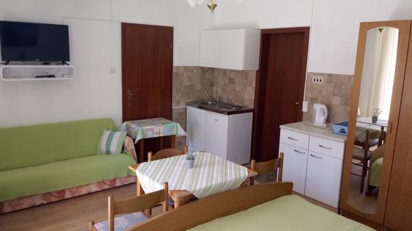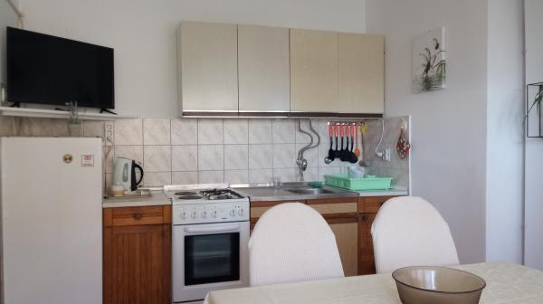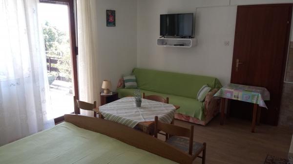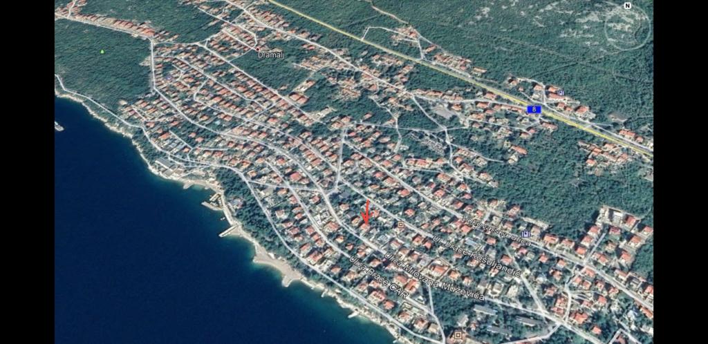 Apartmán se nachází v Dramalj, na ulici Milovan Muževiža 116. S centrem města Crikvenica spojeným s městským autobusem, městskou lodí a atraktivním turistickým vláčkem. Dům má několik bytových jednotek, které jsou umístěny v 1. patře rodinného domu a ostatní jsou živými majiteli. Apartmány jsou daleko od moře asi 5 min. pěšky do obchodu s potravinami a na pláž. Ideální pro malé rodiny. Byt se skládá z jedné ložnice s manželskou postelí a přistýlkou, plně vybavené kuchyně, koupelny a chodby. Vstup do bytu je ze zadní části domu a přichází přímo do kuchyně, odkud nabízí krásný výhled na moře a ostrov Krk, stejně jako balkon před ložnicí.